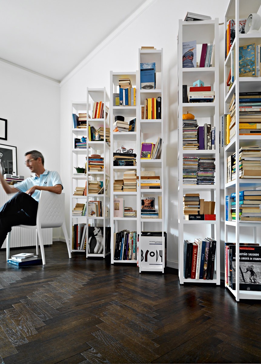 Отличительной чертой стеллажа Singles является возможность его установки в тех местах, в которых довольно сложно установить предметы мебели, например, в углах комнаты. Стеллаж отличается особой устойчивостью, несмотря на свою кажущуюся легкость. Каркас стеллажа доступен в двух цветах - светлое дерево или белый.