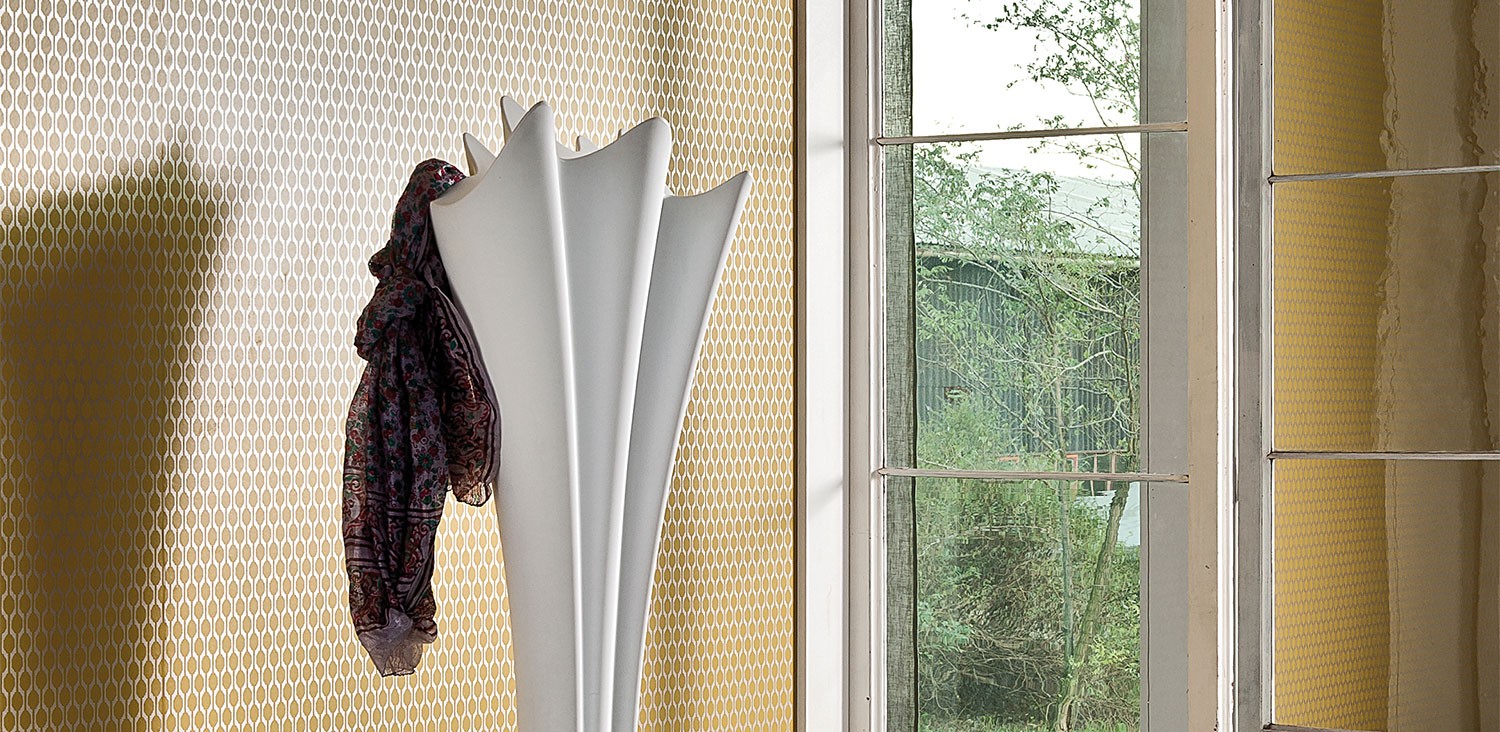 Sipario — напольная вешалка из полиуретана. Модель доступна в белом или светло-сером цвете. Благодаря рельефной структуре вешалка выглядит очень нежно и элегантно. Модель легко впишется в интерьер современной комнаты. Более подробную информацию можно уточнить у менеджера.