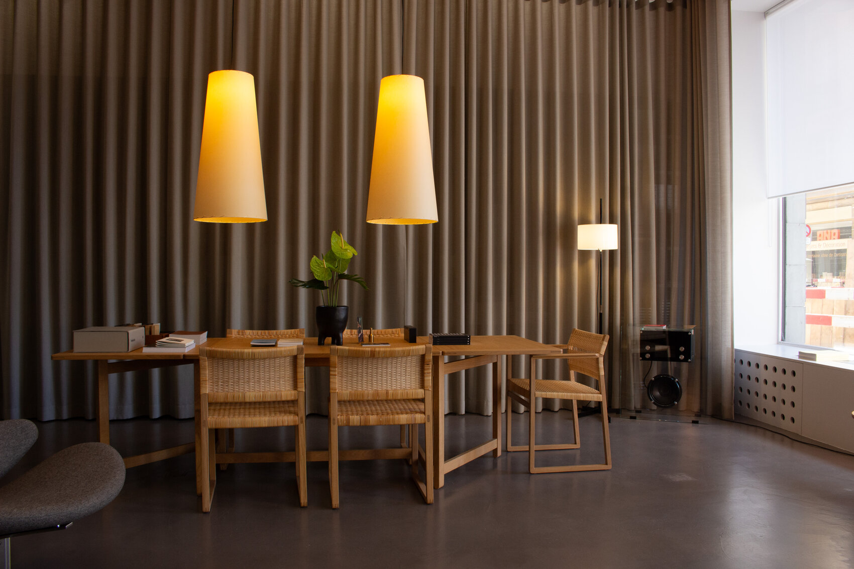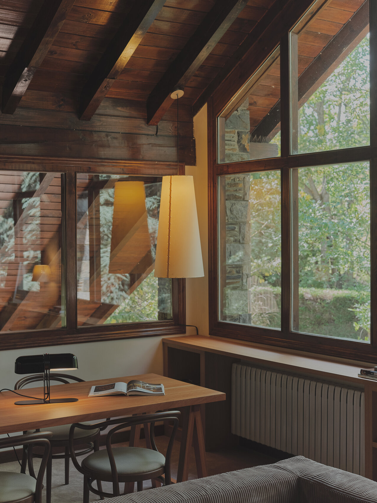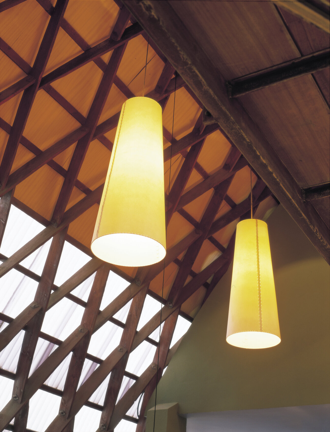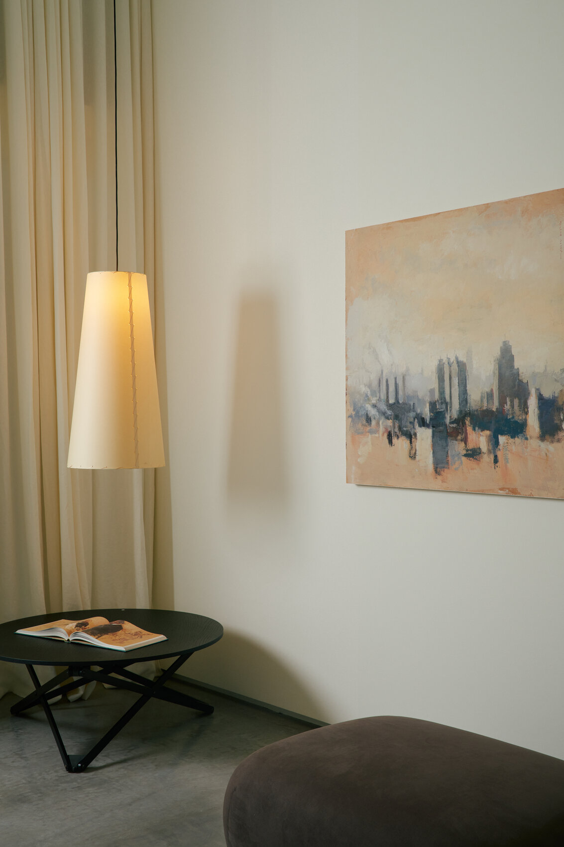 Дизайн светильника сочетает лаконичность форм и утончённость деталей. Коническая геометрия абажуров не только выглядит стильно, но и помогает грамотно распределять свет, создавая выразительные световые акценты. Благодаря универсальному бежевому оттенку пергамента светильник легко вписывается как в классические, так и в современные интерьеры.
