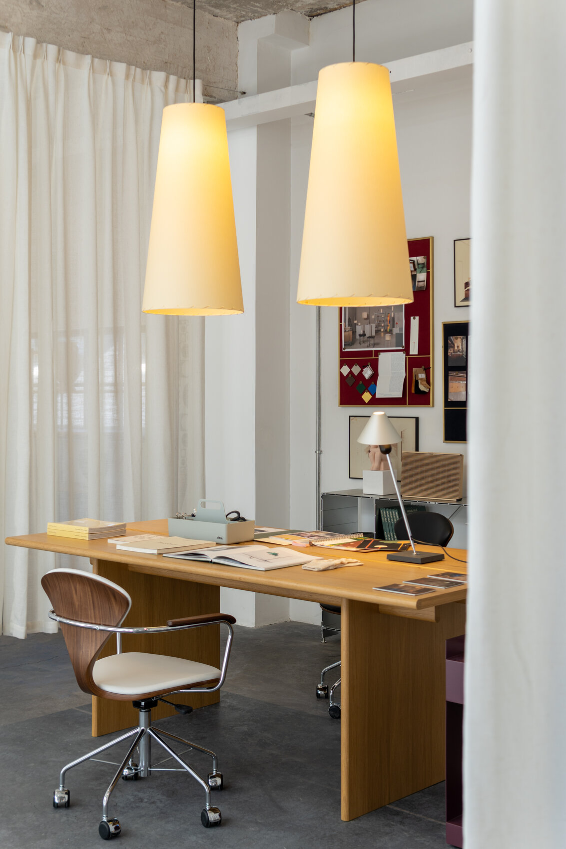 Особого внимания заслуживает возможность регулировать высоту подвеса — максимальная длина составляет 300 см. Это делает светильник универсальным: он отлично смотрится и в помещениях с высокими потолками, и там, где нужно гибко настраивать уровень освещения. Sísísí cónicas largas не просто освещает пространство — он становится изысканным декоративным элементом, придающим интерьеру особый шарм.