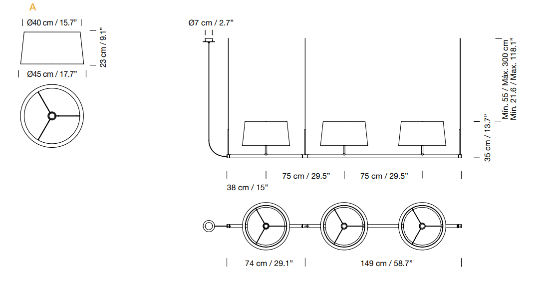 Система освещения Sistema Gran Fonda — это более крупная версия известной системы Fonda. Её основа — тонкие трубчатые конструкции из никеля с матовой поверхностью. На этих трубках можно разместить один или три светильника.