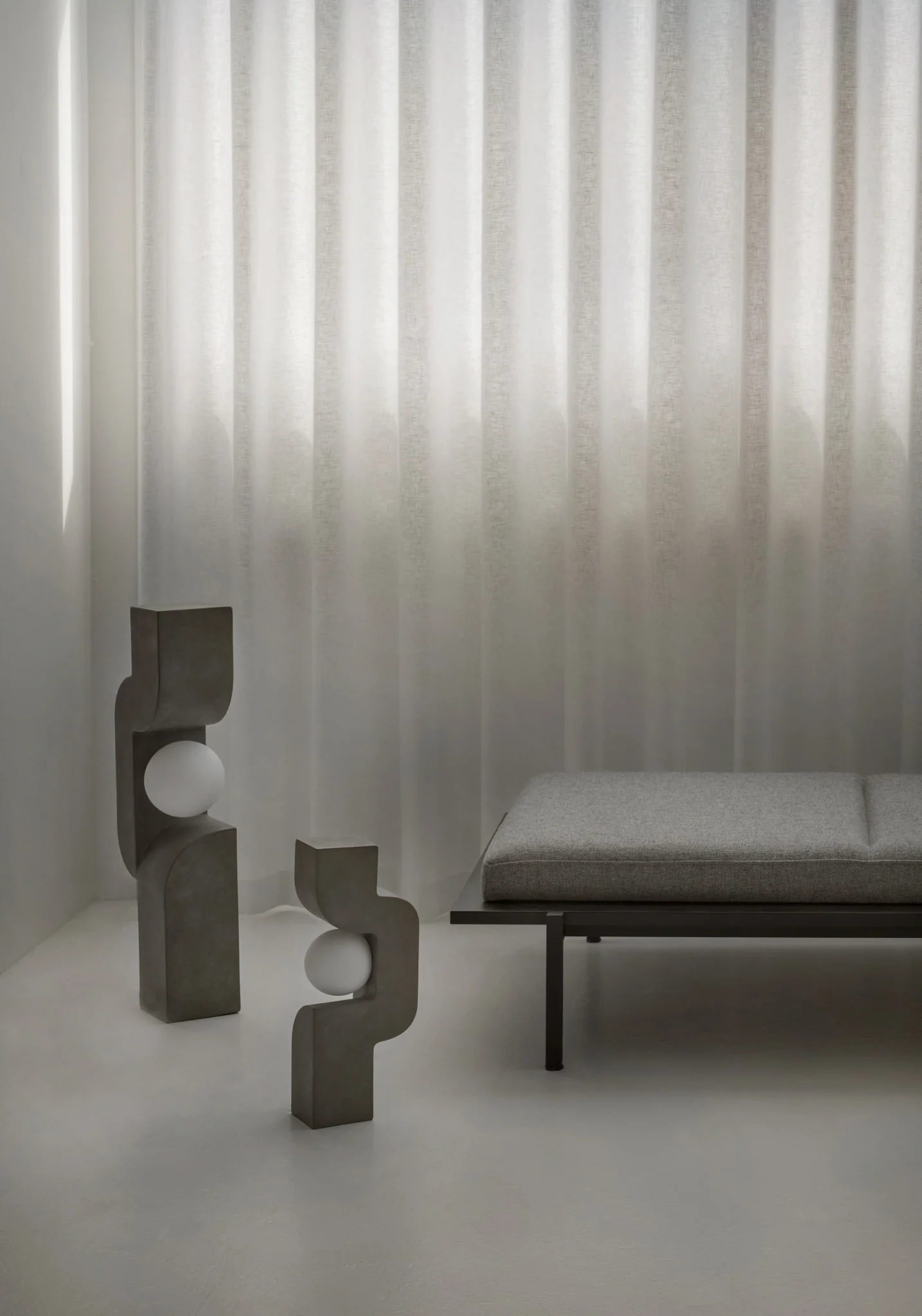 При выключенном светильнике, его гладкая керамическая оболочка выглядит сдержанно и элегантно. В выключенном состоянии она напоминает о природном происхождении материала, его теплоте и природной красоте. Однако стоит включить светильник, как пространство преображается, оживая под мягким светом.