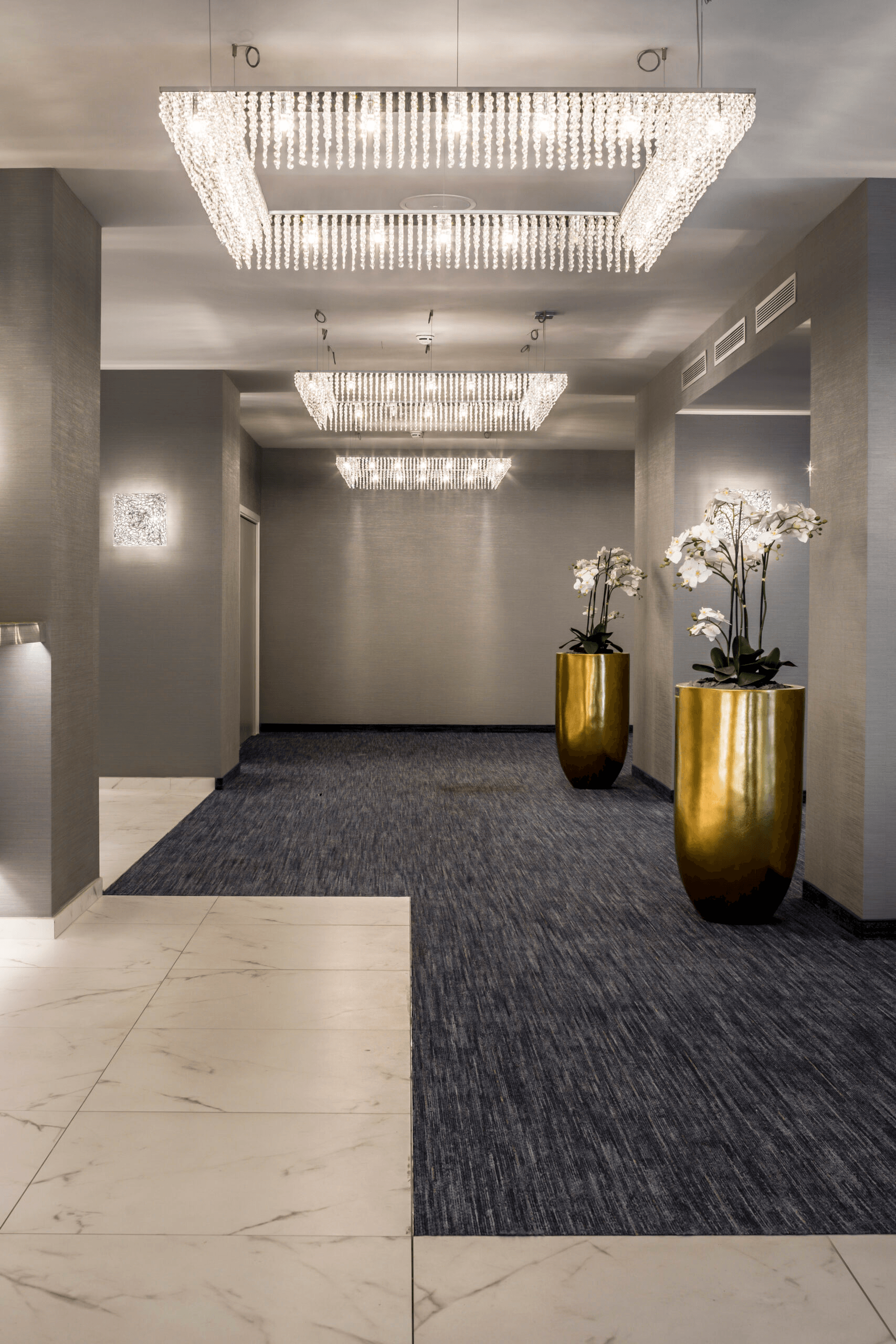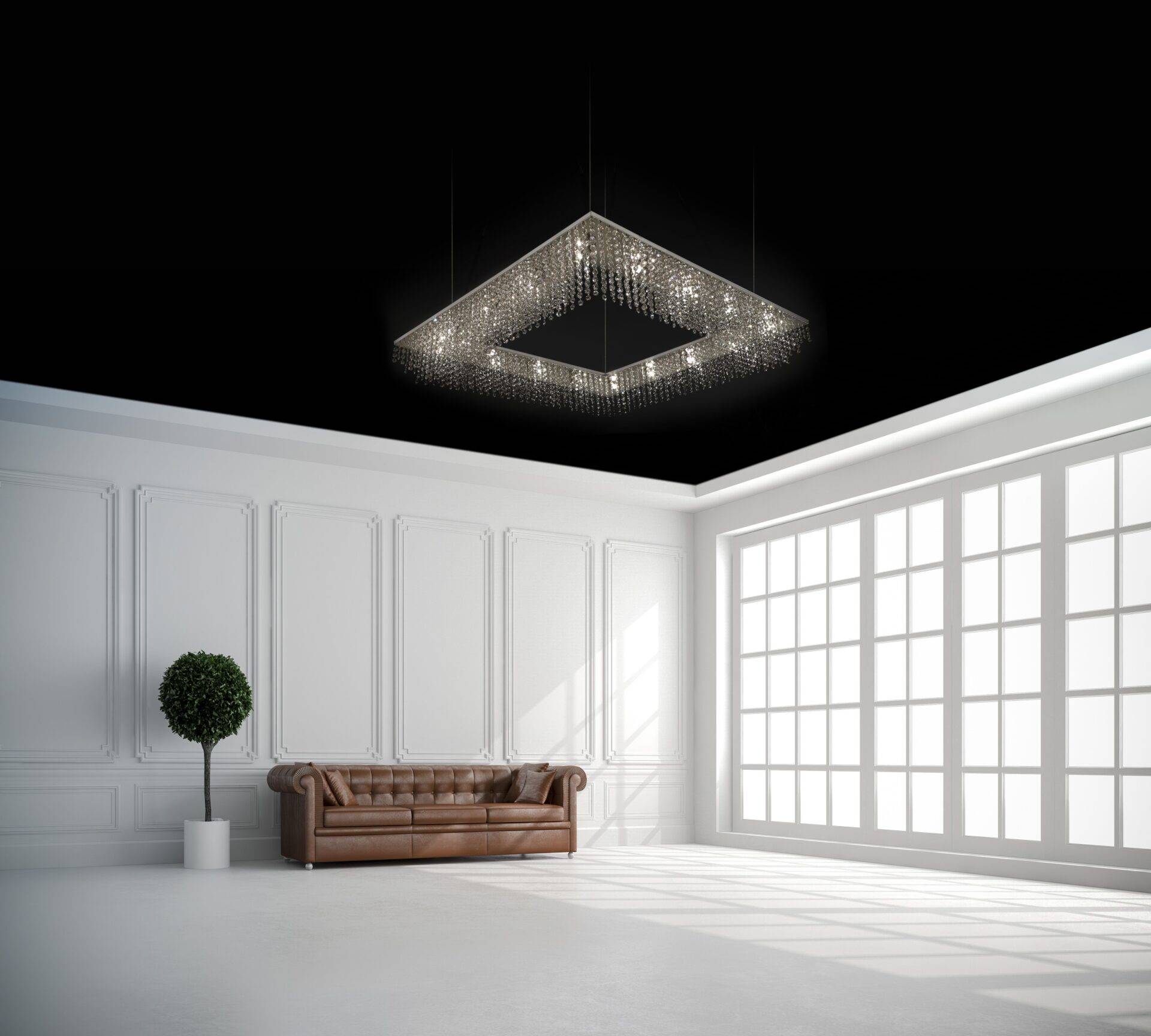 Люстра доступна в четырёх размерах квадратной формы: 61 x 61 см, 100 x 100 см, 142 x 142 см и 226 x 226 см. Такой выбор позволяет подобрать оптимальный вариант для любого помещения, будь то небольшая комната или просторный зал.