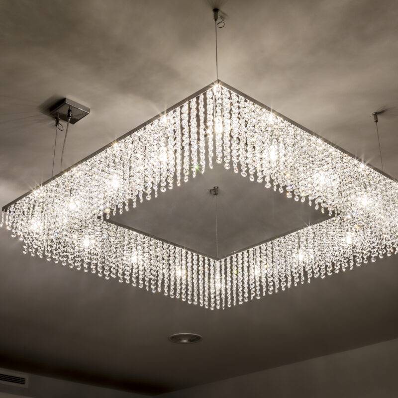 Люстра изготовлена вручную, что подчёркивает её эксклюзивность и уникальность. Каждый светильник отличается своим узором из кристаллов, который формируется благодаря ручной работе мастеров. Это придаёт каждой люстре Sky Cycles Square неповторимый характер и делает её отличным выбором для тех, кто ценит качество и индивидуальность.