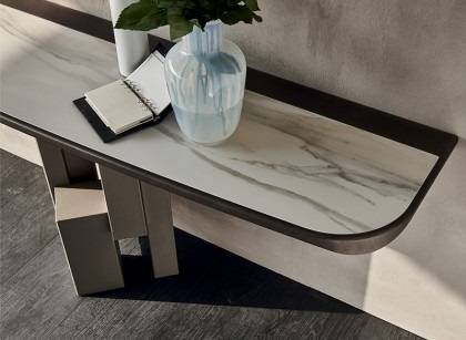 Серия Skyline — это урбанистическая элегантность, воплощенная в мебели. Вдохновленная графичными силуэтами мегаполисов, она сочетает в себе стройные линии, сложные объемы и игру света. Лакированная сталь основания создает динамичный светотеневой эффект, а выбор столешниц — керамика с эффектом мрамора или благородное дерево — позволяет создать идеальный акцент для современного пространства. Skyline Keramik: Стол с выразительным стальным основанием и столешницей из керамики с эффектом натурального мрамора. Привносит в интерьер ноту современной роскоши.