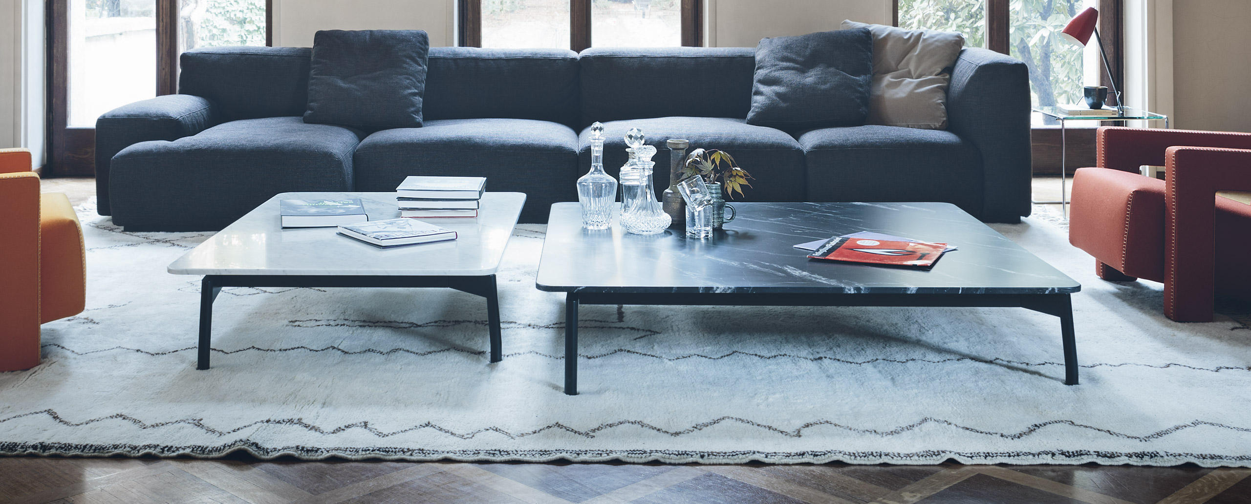 Sled - это маленький журнальный столик с мраморной столешницей и неповторимым дизайном. Доступен в двух формах: прямоугольной и квадратной. Ножки выполнены из стали. Также Вы можете заказать столешницу из лакированного дуба. Этот стол прекрасно сочетается с диванами из одноименной коллекции Sled, создавая уютную атмосферу для отдыха.