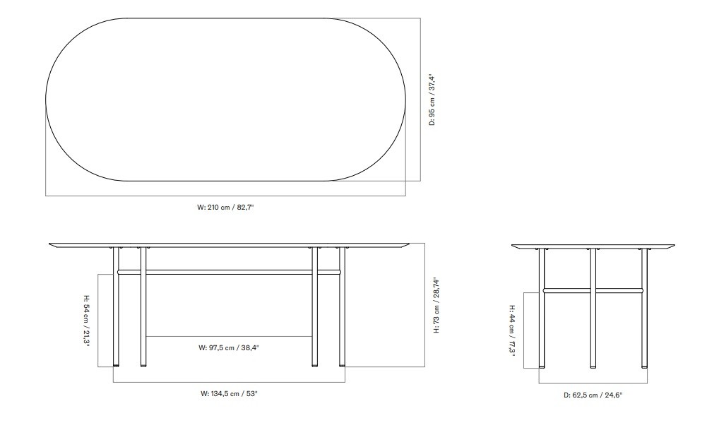 Его размеры: высота 73 см, ширина 210 см, глубина 95 см. Он идеально подходит для больших обедов. Также он подойдет для семейных встреч.