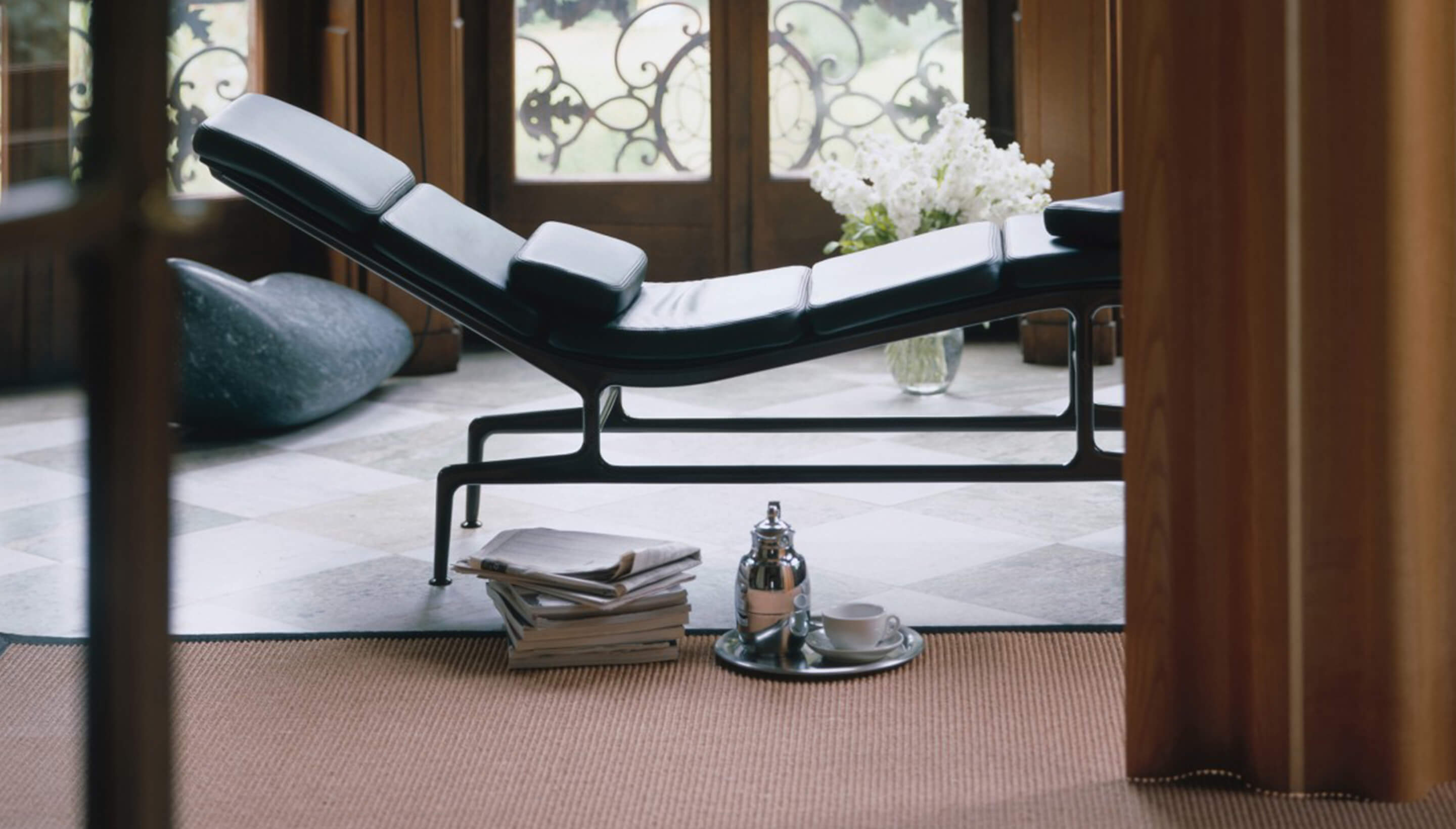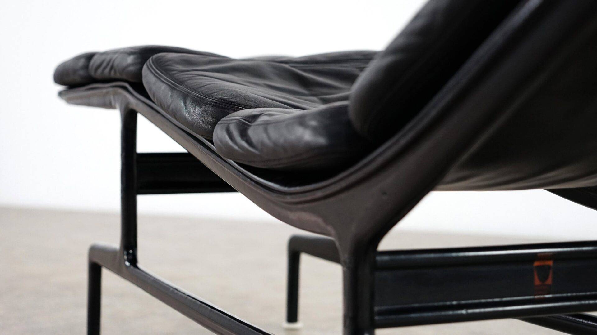 Шезлонг Soft Pad производится с 1968 г. К алюминиевому каркасу крепятся 6 подушек сидения, соединенных молнией, а также имеются две дополнительные съемные подушки для большего комфорта. Модель изготавливается с наполнителем из пенополиуретана, обивка может быть из натуральной кожи или кожи серии Премиум. В коллекцию также входят офисные кресла. Более подробную информацию и варианты расцветок можно уточнить у менеджера.