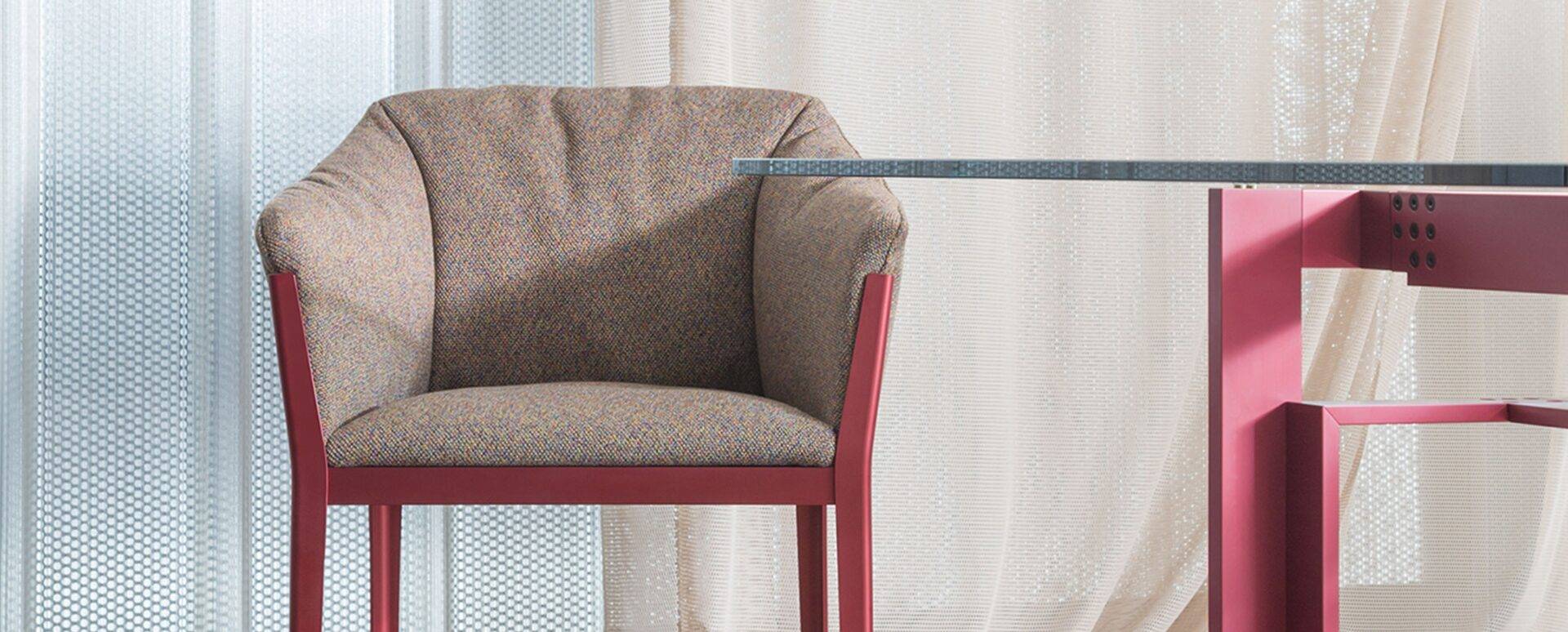 Стул Cotone разработан французскими дизайнерами Ронаном и Эрваном Буруллек (Ronan & Erwan Bouroullec). Основание кресла изготовлено из алюминия с экструдированными профилями. Алюминиевая несущая конструкция возможна в разных вариантах исполнения: лакированной матовой черной, натуральной анодированной или в цветах матовый красный, матовый серо-голубой, зеленый или медный. Внутренняя набивная часть состоит из пенополиуретана с мягким и удобным стеганым покрытием, обтянутым тканью или кожей. Более подробную информацию можно уточнить у менеджера.