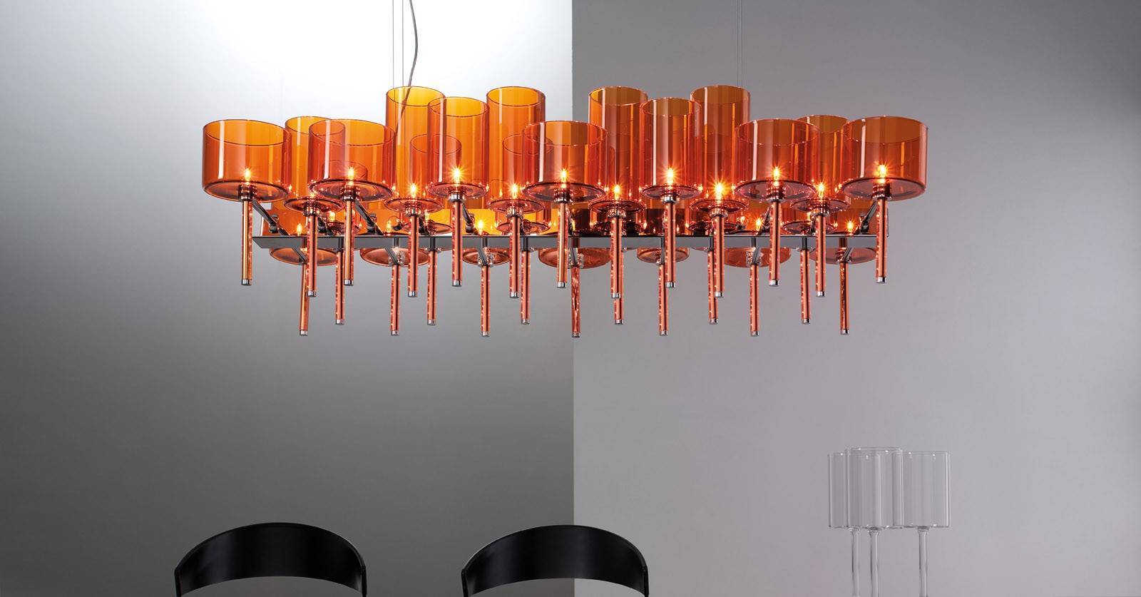 Обворожительная игра стеклянных бокалов, иногда перевернутых, наложение друг на друга бесцветных или цветных прозрачных элементов. Spillray — это эклектическая и элегантная коллекция, различные композиции которой способны создавать нежные плавные движения и изысканную игру цвета. Текучие геометрические формы, стеклянные чаши, предложены в различных моделях, и выходящий из них свет распространяется во всех направлениях. Предлагаются одиночные подвесные светильники, а также линейные модели (6 или 10 ламп) или модели в виде грозди (от 3 до 12 ламп). Варианты люстр: круглая на 30 ламп с двумя уровнями (новинка), круглая на 20 ламп с одним уровнем (новинка) или прямоугольная на 26 ламп (новинка). Предложены также встраиваемые плафоны с одной лампой (новинка), бра и настольные лампы высотой 35 или 50 см (новинка). Абажуры из стекла трех размеров: прозрачные, оранжевого, красного и серого цветов. Каркас из хромированного металла. По одному или в группе, светильники коллекции Spillray естественно вписываются в обстановку жилых и общественных помещений, создавая интерьер и становясь отличительными элементами любого пространства.