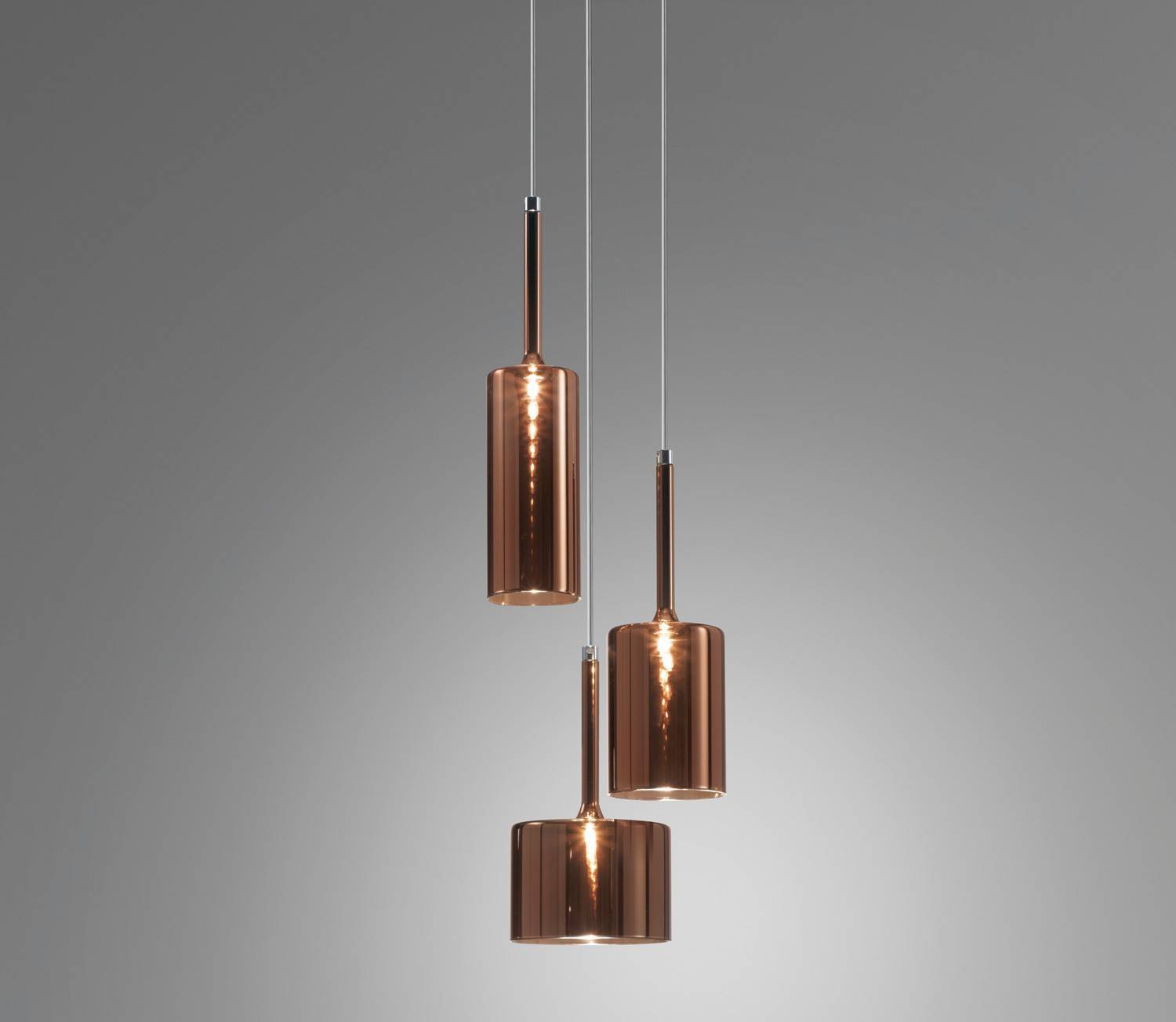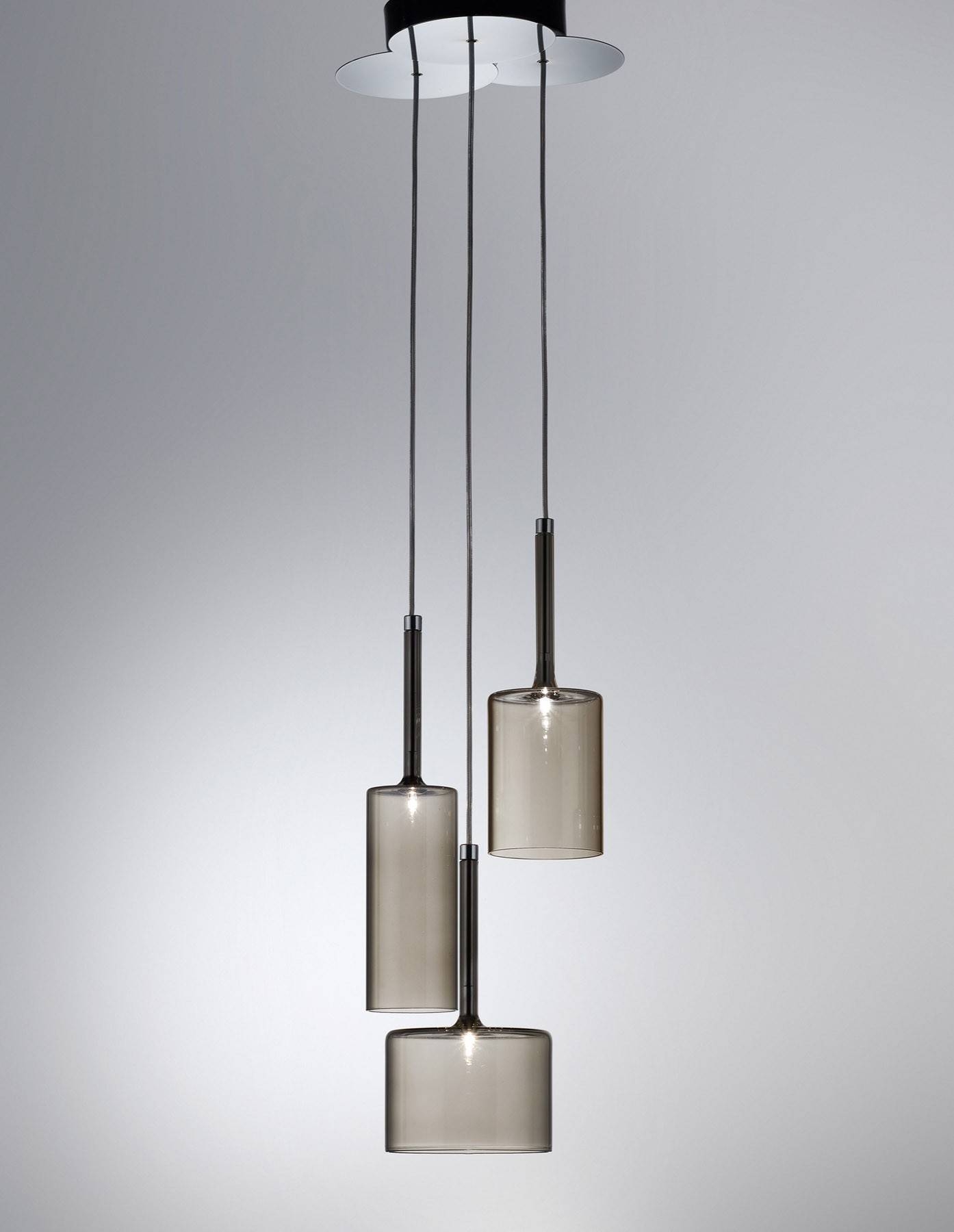 Обворожительная игра стеклянных бокалов, иногда перевернутых, наложение друг на друга бесцветных или цветных прозрачных элементов. Spillray — это эклектическая и элегантная коллекция, различные композиции которой способны создавать нежные плавные движения и изысканную игру цвета. Текучие геометрические формы, стеклянные чаши, предложены в различных моделях, и выходящий из них свет распространяется во всех направлениях. Предлагаются одиночные подвесные светильники, а также линейные модели (6 или 10 ламп) или модели в виде грозди (от 3 до 12 ламп). Варианты люстр: круглая на 30 ламп с двумя уровнями (новинка), круглая на 20 ламп с одним уровнем (новинка) или прямоугольная на 26 ламп (новинка). Предложены также встраиваемые плафоны с одной лампой (новинка), бра и настольные лампы высотой 35 или 50 см (новинка). Абажуры из стекла трех размеров: прозрачные, оранжевого, красного и серого цветов. Каркас из хромированного металла. По одному или в группе, светильники коллекции Spillray естественно вписываются в обстановку жилых и общественных помещений, создавая интерьер и становясь отличительными элементами любого пространства.