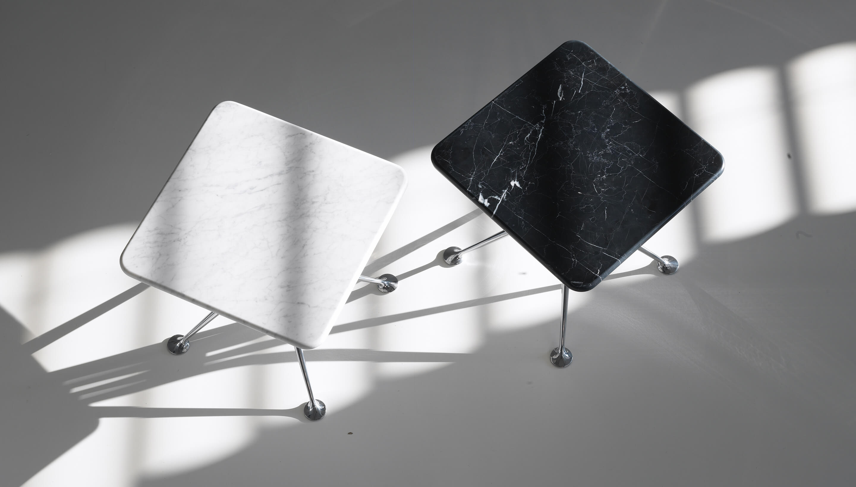 Кофейный стол Splayed Leg выполнен в современном стиле. Скошенные ножки изготавливаются из литого алюминия. Квадратные мраморные столешницы доступны в белом и черном цветах. Небольшие размеры делают этот стол идеальным решением в любом интерьере. Более подробную информацию и варианты расцветок можно уточнить у менеджера.