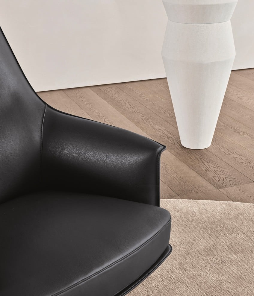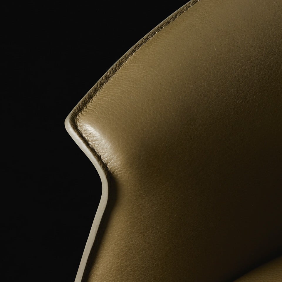 В зависимости от предпочтений, кресло может быть оснащено съемным чехлом из ткани для практичности или цельнокроенной обивкой из кожи, подчеркивающей безупречность линий.