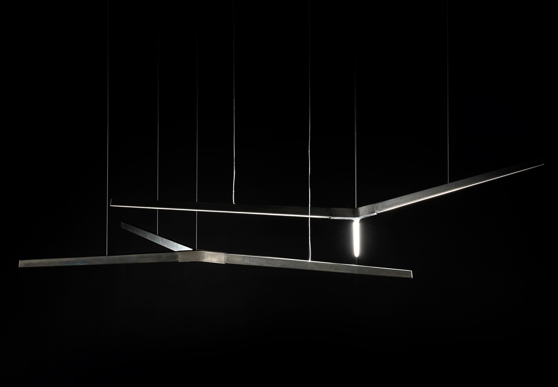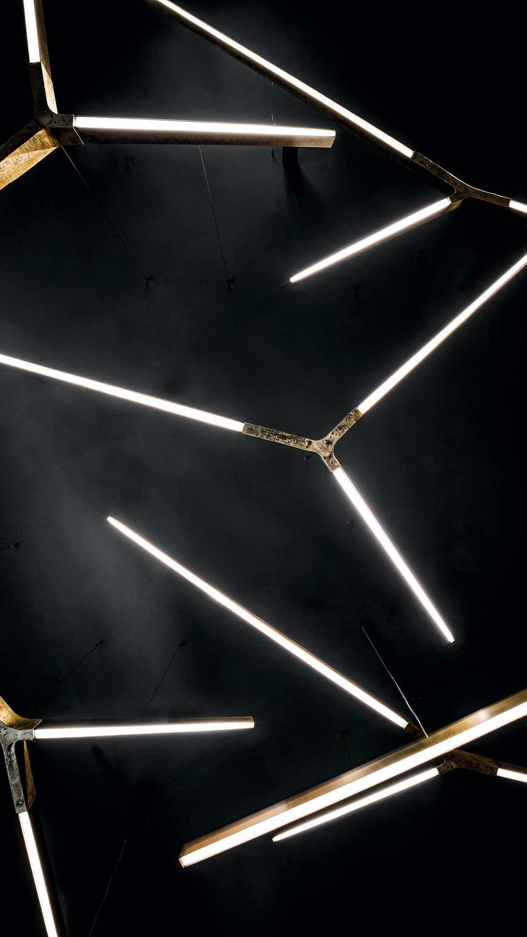 Подвесной светильник Starlight Horizontal — это воплощение элегантности и утончённого дизайна, гармонично сочетающее строгие геометрические формы и изящную обработку материалов. Его Y-образный металлический каркас не только придаёт конструкции уникальный и запоминающийся вид, но и служит основой для создания светового ландшафта. Лопасти из металла, плавно расходящиеся от центра, формируют динамичные и выразительные линии, которые мягко рассеивают свет, создавая атмосферу уюта и комфорта.