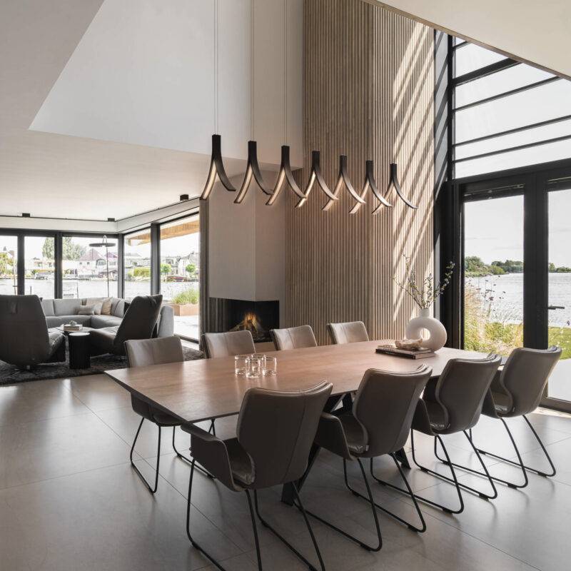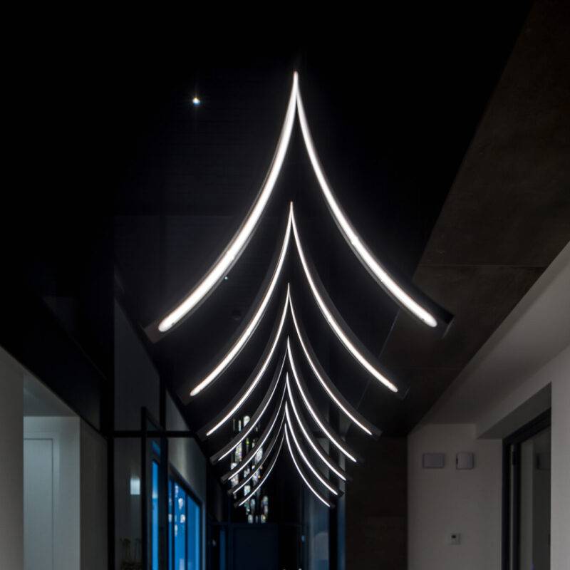 Особое внимание заслуживают материалы и техника исполнения. Stream H изготовлен из тончайшего металла, что подчёркивает его изысканность и долговечность. Ручная работа, выполненная с высокой точностью, придаёт каждому светильнику уникальность. Металлическая поверхность может быть обработана в нескольких вариантах отделки, таких как хром, матовый никель, чёрная или белая структура, что позволяет выбрать светильник, идеально соответствующий стилю интерьера.