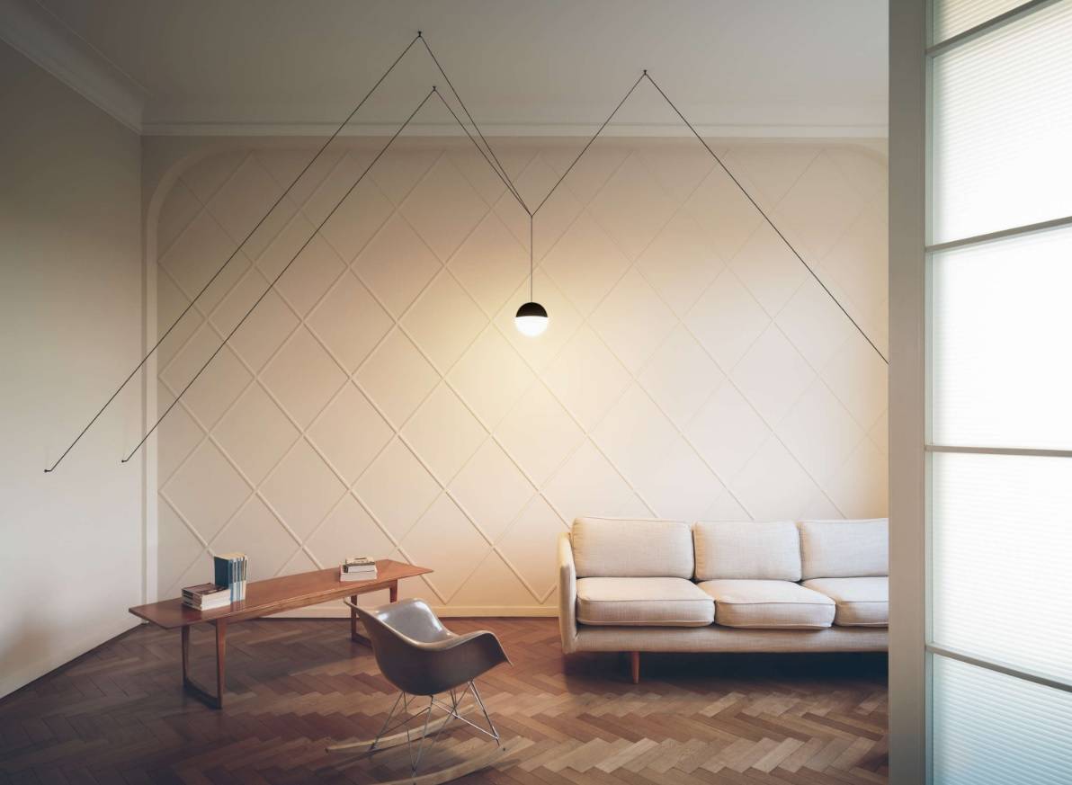 Подвесной светильник STRING SFERA — это сочетание индустриальной эстетики и скульптурной лёгкости. Модель входит в культовую серию String Light, вдохновлённую гибкостью проводов и минималистичной графикой.