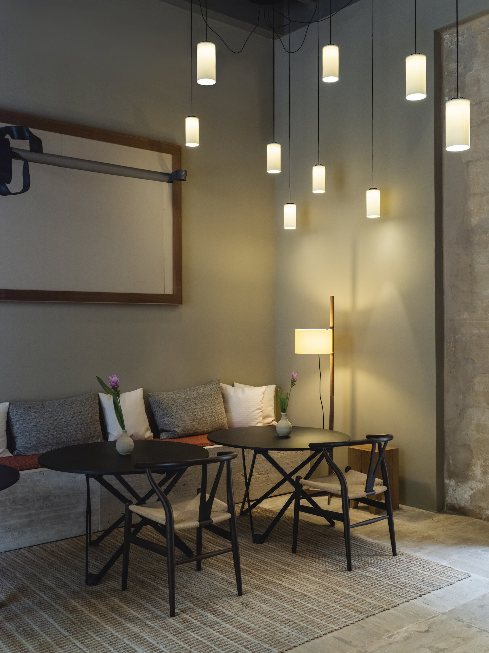 Особенность столика Subeybaja Table — в простом и плавном механизме регулировки высоты. Его легко найти по небольшой белой точке на корпусе. Достаточно активировать механизм — и столик без усилий займёт нужное положение, оставаясь при этом устойчивым.