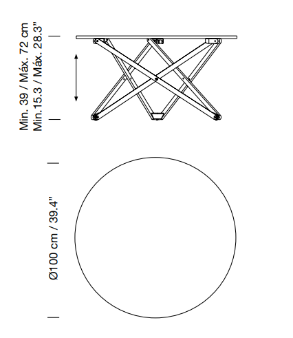 Столик Subeybaja Table — это многофункциональный предмет мебели, который легко трансформируется в зависимости от потребностей. Благодаря семи регулируемым высотам, которые варьируются от 39 см до 72 см, этот столик можно адаптировать под разные сценарии использования: от журнального столика до обеденного стола и всех промежуточных вариантов.