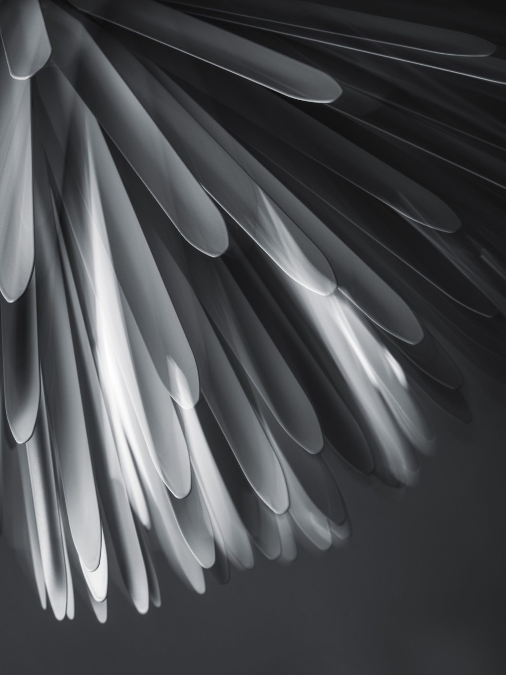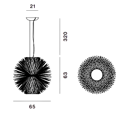 Дизайн Sun - Light of Love строится на геометрии и свете. Тонкие металлические спицы-лучи закреплены на центральном корпусе, скрывающем мощный светодиодный источник. Светильник не имеет четко очерченной внешней поверхности, что создает эффект парящего в воздухе светового сгустка. Модель обеспечивает двойное освещение — мощный поток света, направленный вниз на поверхности, и мягкое рассеянное свечение.