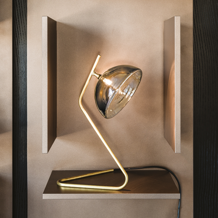 Настольная версия светильника Sunset сохраняет характерные черты коллекции: полусферический плафон из дымчатого хрусталя, закрепленный на изящной латунной стойке. Компактные размеры и направленный свет делают лампу идеальной для организации рабочего пространства, подсветки прикроватной тумбы или создания уютного уголка для чтения. Настольная лампа Sunset органично вписывается в интерьеры разных стилей, становятся изящным акцентом на письменном столе, комоде или консоли.