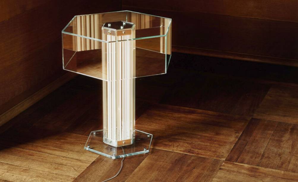Вдохновлённая работами великих мастеров венецианского стекла XX века, SuperWire T представляет собой скульптуру из света и прозрачности. Её форма сведена к абсолютному минимуму, но обладает выразительной силой: один модуль высотой 45 см, увенчанный шестиугольной пластиной из плоского стекла, соединённой с основанием через полированное алюминиевое крепление.
