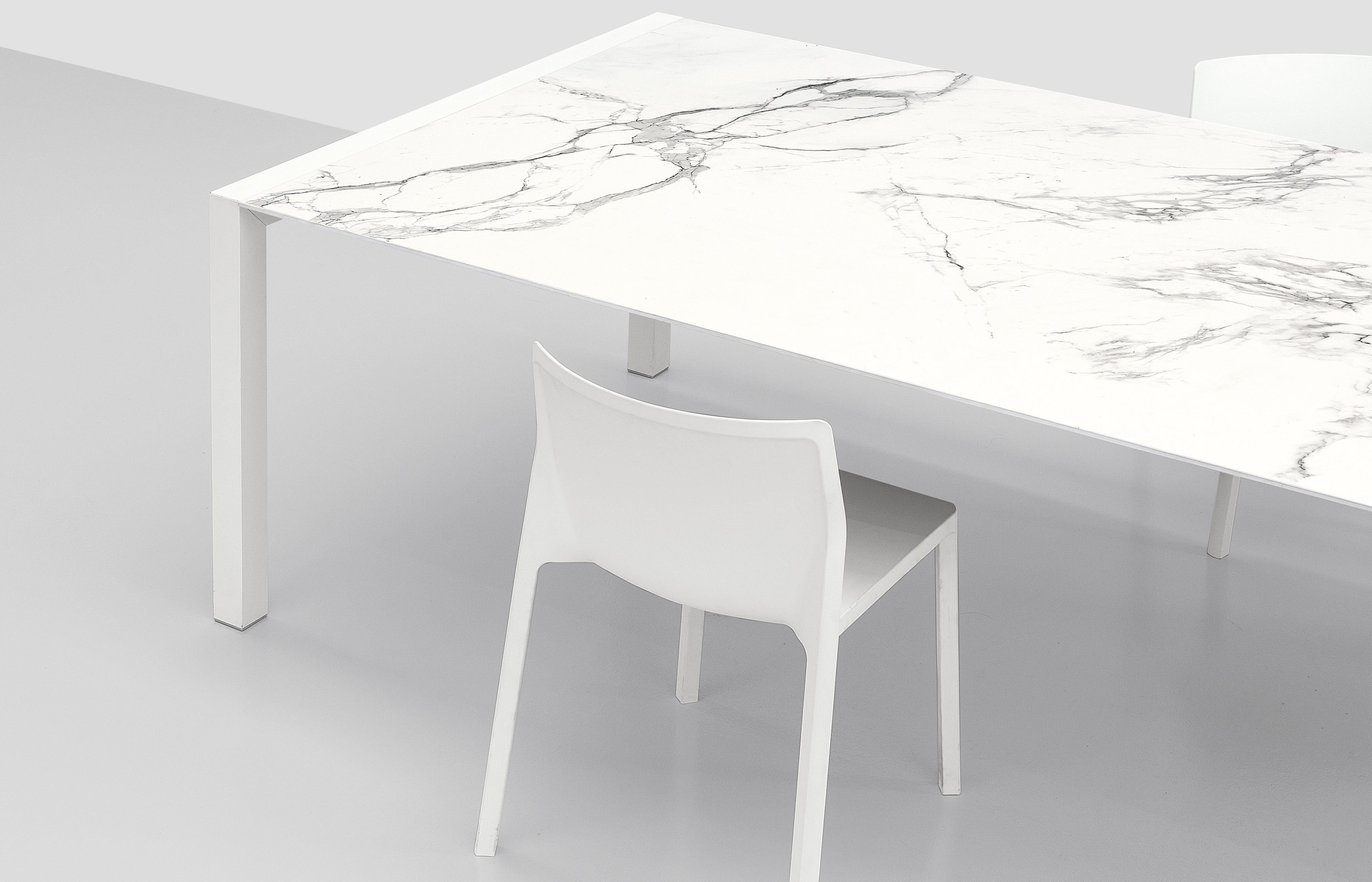 Ножки стола Sushi изготавливаются из полированного алюминия и покрываются лаком в различных цветах. Столешница выполняется в трех вариантах материала: DEKTON®, Fenix-NTM®, матовое или глянцевое стекло. Доступно множество вариантов размера стола. Есть возможность заказать модель с раздвижным топом. Детали о данной модели уточняйте у менеджеров или в PDF инструкции.