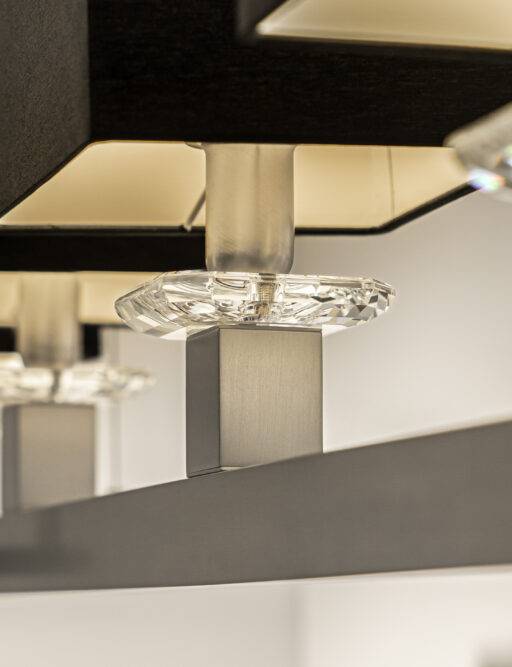 Дизайн светильника отличается изысканностью и лаконичностью, подчёркивая его прочность и долговечность. Мастера тщательно подбирают материалы и выполняют различные виды отделки, благодаря чему каждый светильник приобретает уникальное оформление. Кристаллический элемент, украшающий светильник, добавляет ему нотку роскоши и изящества, придавая ему особый шарм.