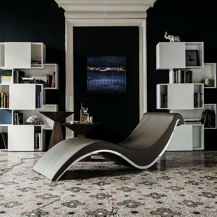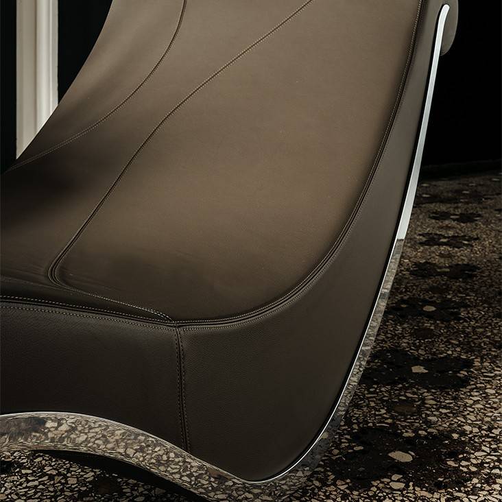 Форма шезлонга Sylvester — эксперимент с гравитацией и визуальным равновесием в интерьере гостиной. Поверхность спинки и сиденья украшена декоративной строчкой. Возможна обивка натуральной или искусственной кожей. Доступны дополнительные цвета обивки.