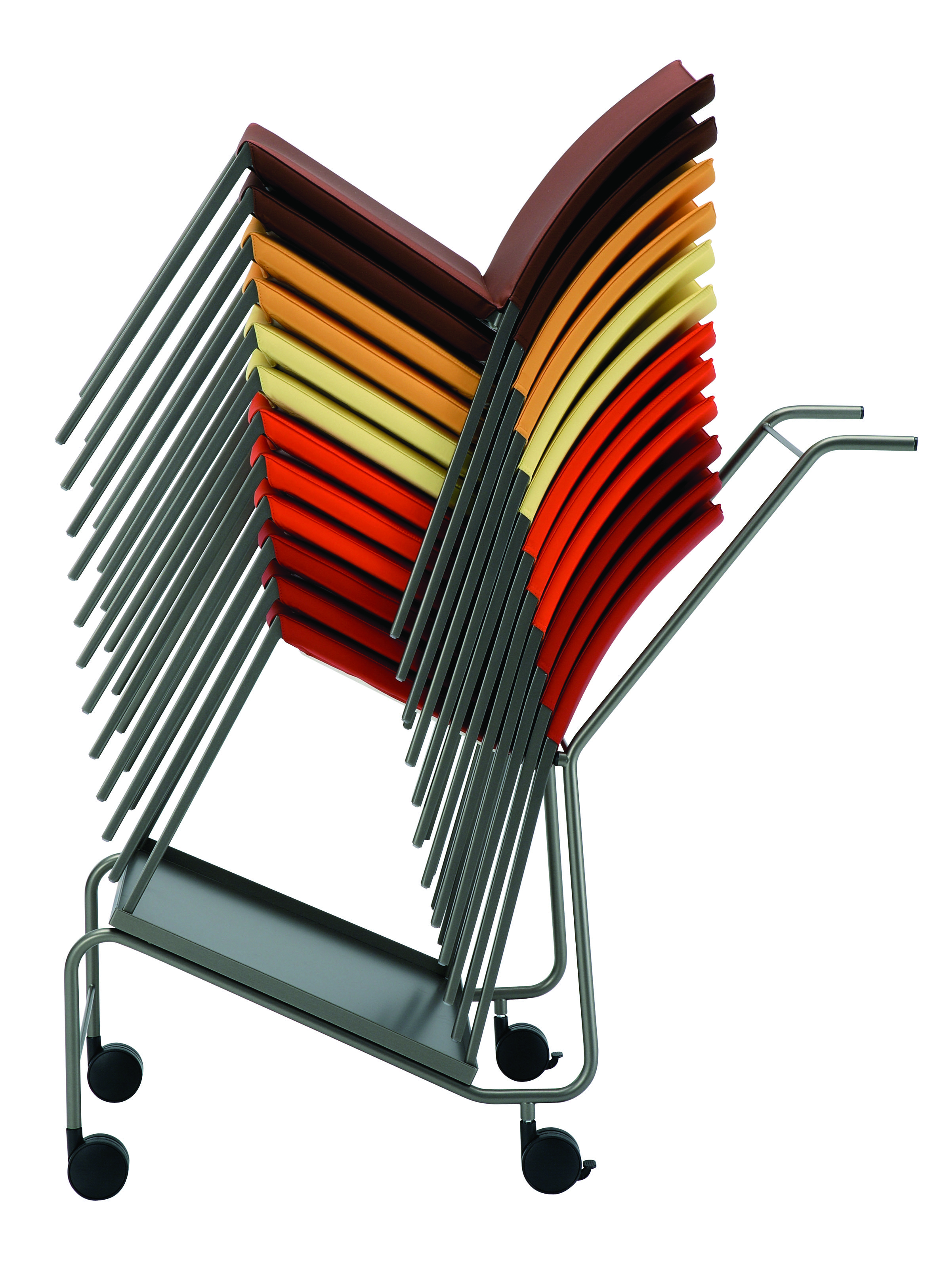 Штабелируемый стул Talia 2080 имеет основание из полированного или окрашенного в графитовый либо белый цвет алюминия. Каркас сиденья и спинки выполнен из полиуретана. Съемный чехол можно изготовить из кожи или ткани. Доступно множество цветов обивки. Подробности уточняйте у менеджеров или в PDF инструкции.