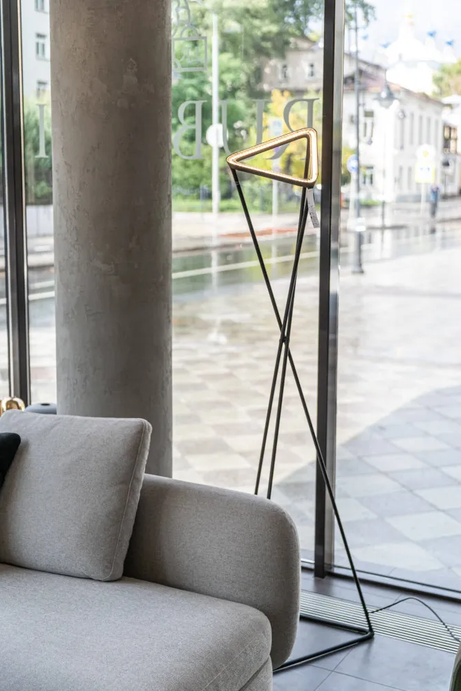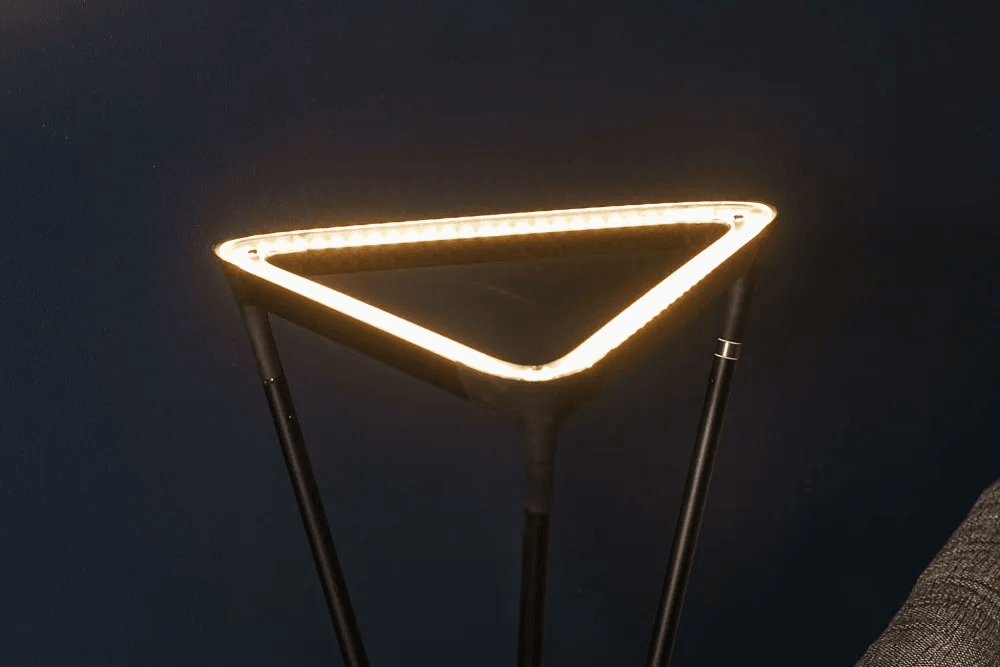 Отражатель торшера также имеет треугольную форму, что позволяет максимально эффективно распределять свет. Он не только направляет его в нужном направлении, но и обеспечивает равномерное освещение, без резких теней и контрастов. Это делает торшер идеальным для использования как в жилых, так и в коммерческих помещениях.