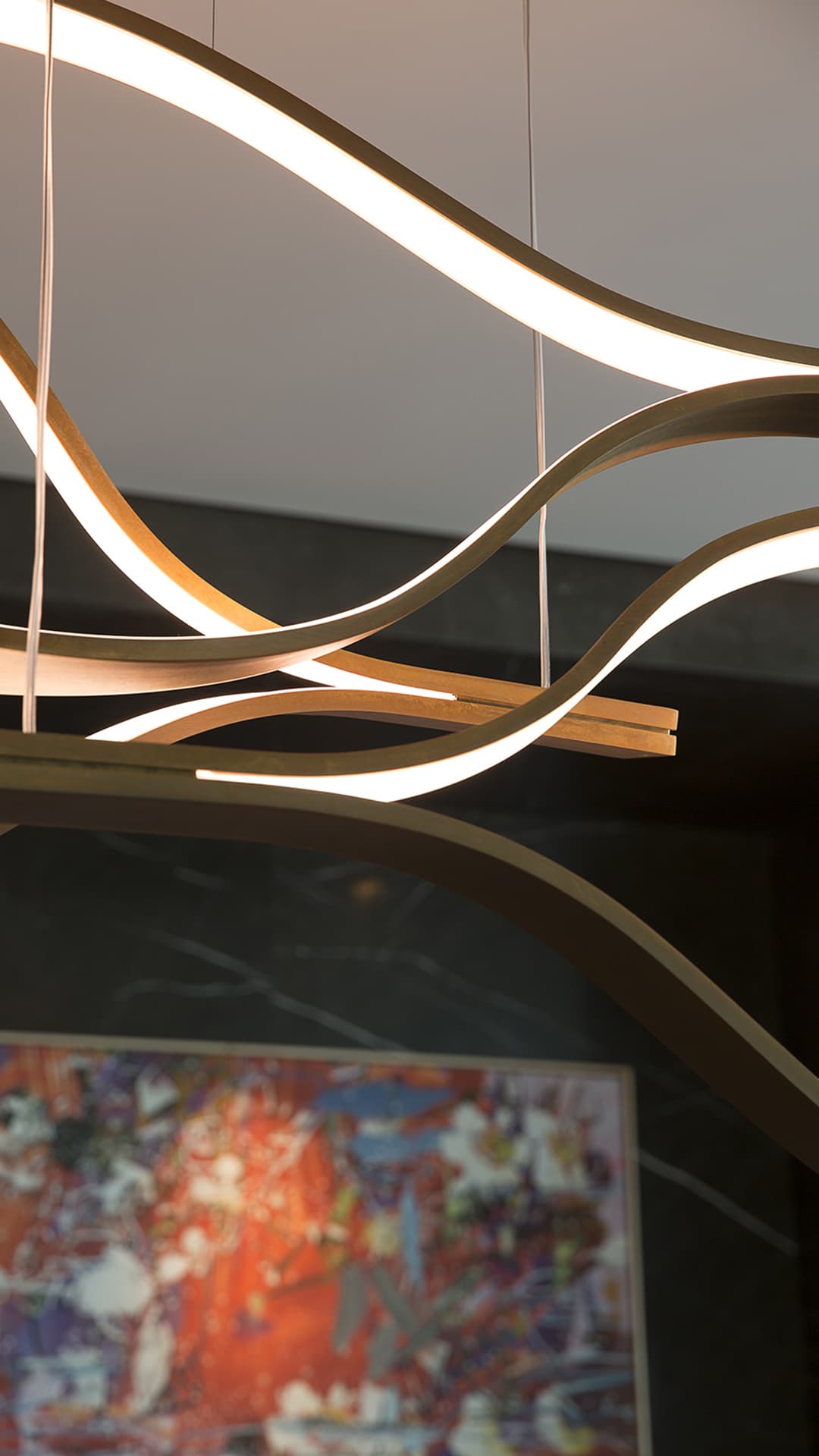 Светящиеся ленты светильника мягко извиваются, создавая плавные и завораживающие движения. Рhythmic колебания подчеркивают соблазнительные и неземные текстуры, придавая изделию особую атмосферу. Светильник выходит за рамки обычного освещения. Он превращается в настоящее произведение искусства. Светильник не только освещает пространство, но и наполняет его эстетикой и магией.