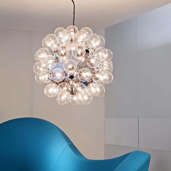 Taraxacum 88 — это икона промышленного дизайна, вдохновлённая формой одуванчика (taraxacum на латыни). Эта модель представляет собой сферу, состоящую из 60 прозрачных акриловых «лепестков», собранных вручную вокруг алюминиевого каркаса, что создаёт эффект парящего светящегося облака. Благодаря равномерному рассеиванию света и скульптурной геометрии, Taraxacum 88 S1 наполняет пространство мягким, объёмным и безбликовым освещением. Он идеально подходит для больших интерьеров — гостиных, холлов, лофтов, галерей и премиальных общественных пространств.
