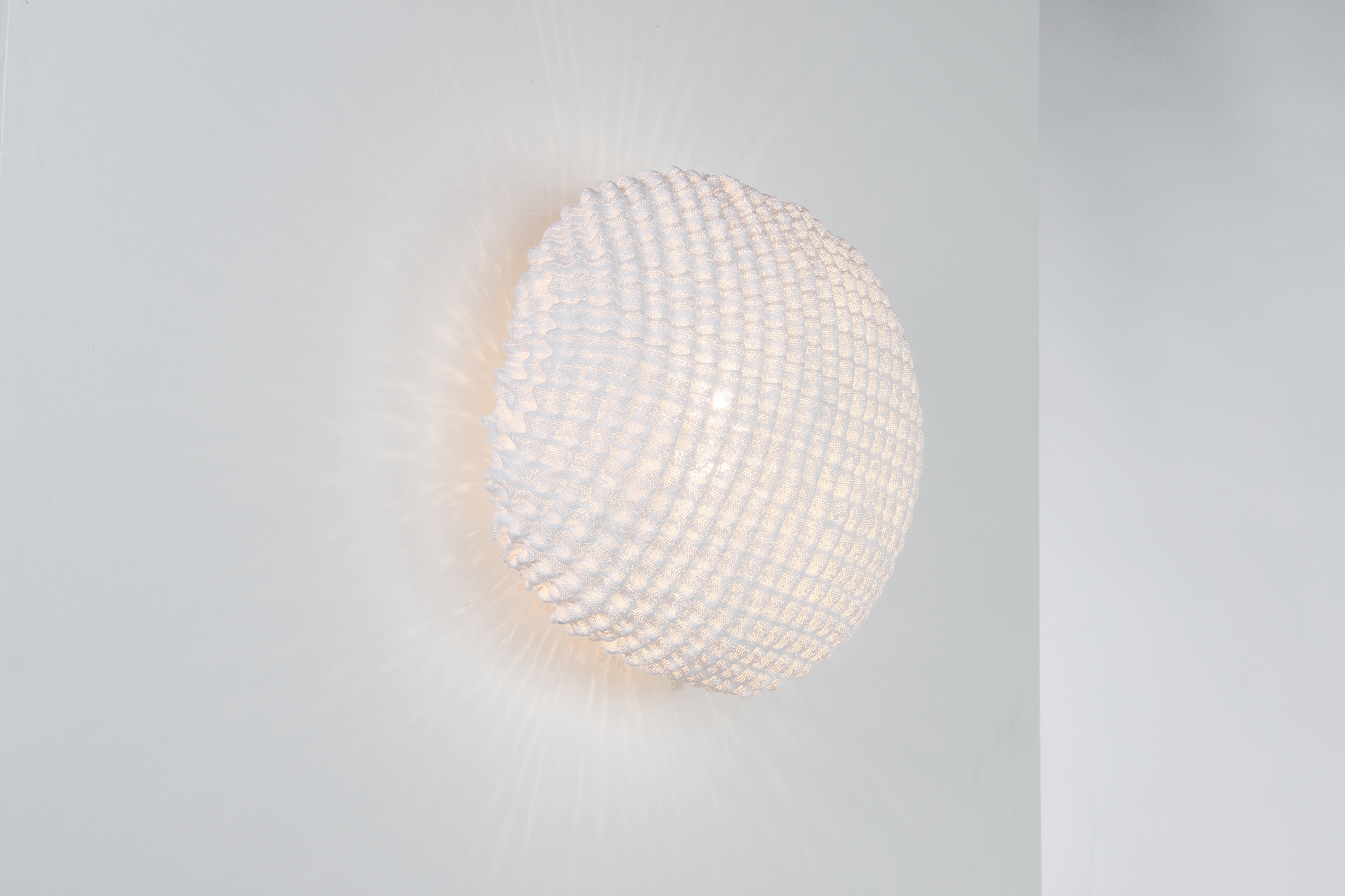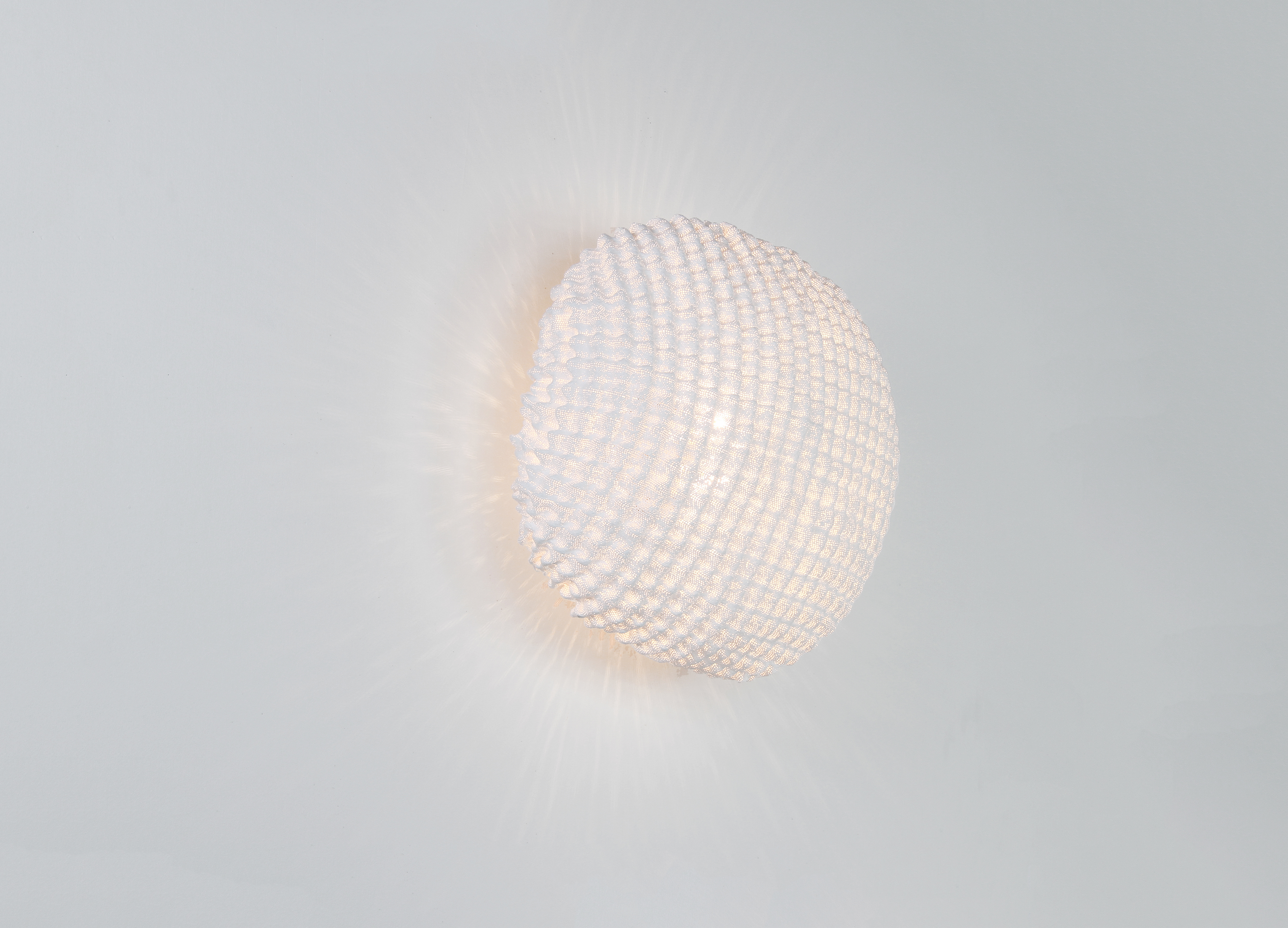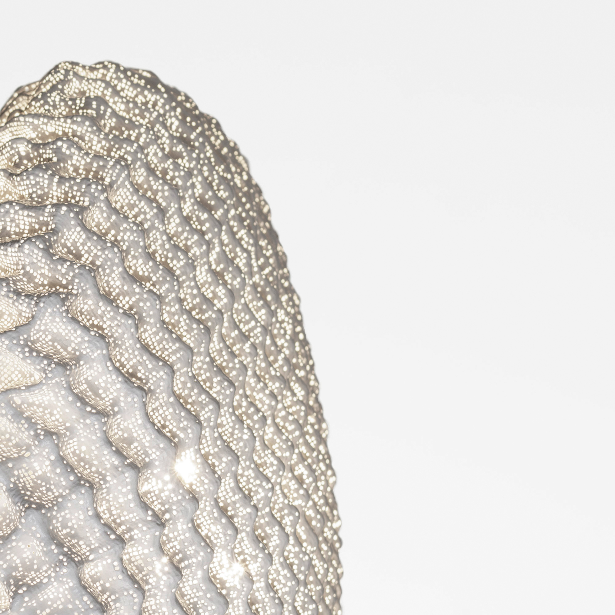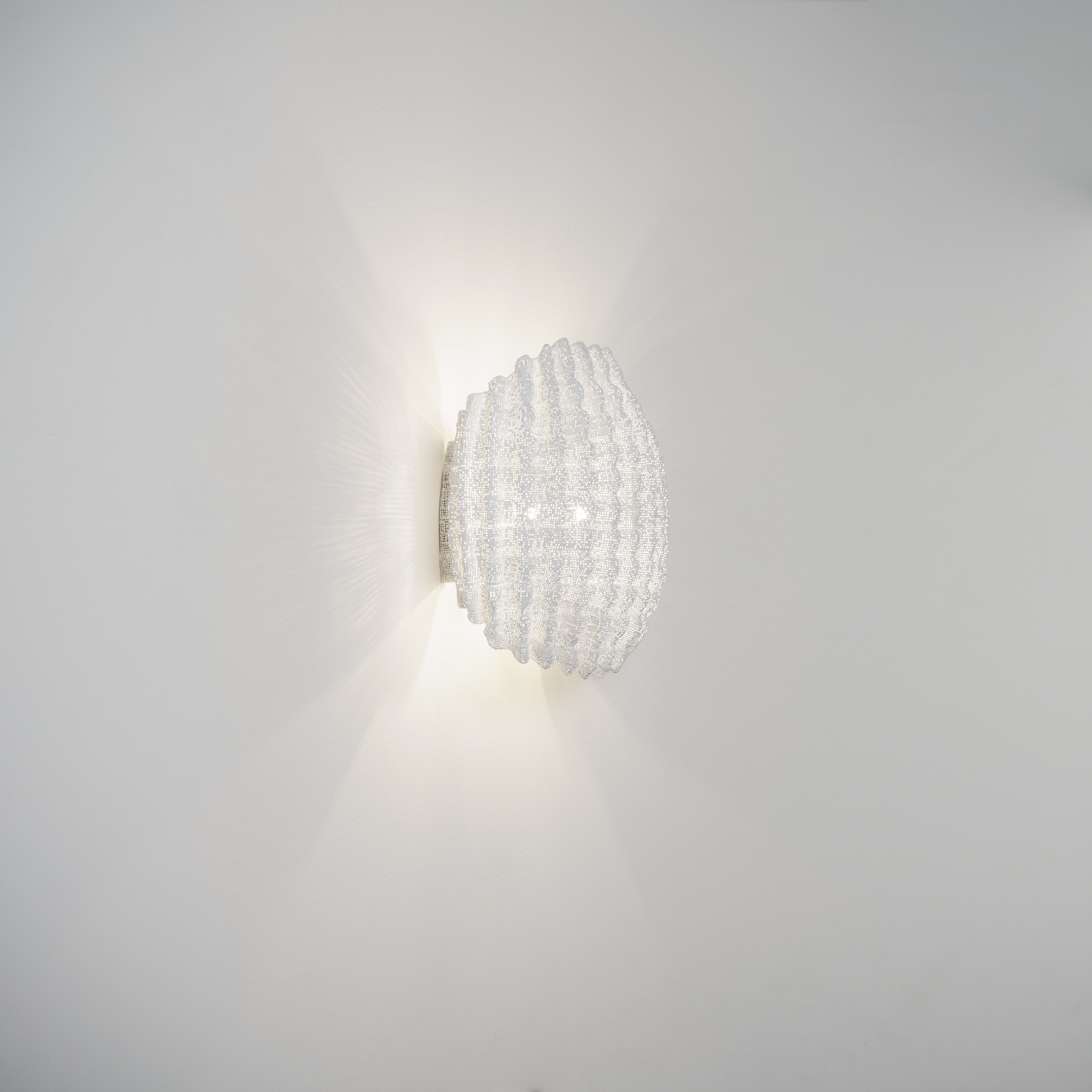 Настенный светильник Tati wall выполнен вручную из окрашенной нержавеющей стали. Этот уникальный предмет интерьера отличается изысканным дизайном: маленькие круги, повторяющиеся в узоре, образуют неправильную округлую оболочку. Сквозь эту оболочку проникает свет, создавая красивые и мягкие тени.
