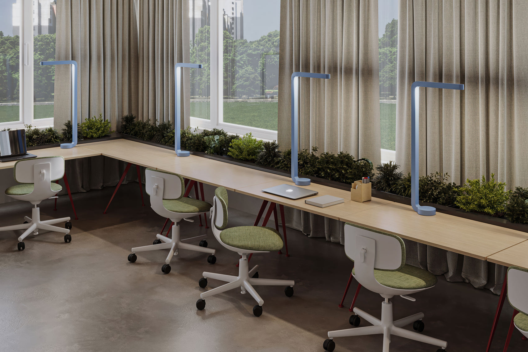 Team Mini — компактный офисный светильник, который ярко освещает и рабочий стол, и всю комнату. Его главная особенность — мощность: он выдаёт 5 000 люменов, что в пять раз ярче обычных настольных ламп. Такой свет обеспечивается массивом из более 240 энергоэффективных светодиодов.