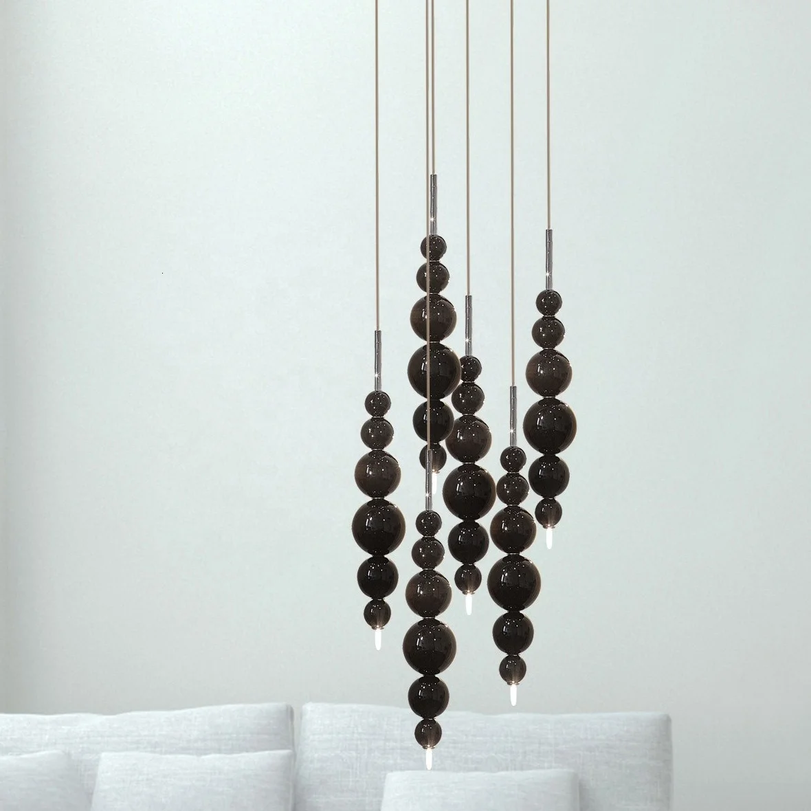 Есть также несколько вариантов со стеклянными деталями, которые придают освещению дополнительную роскошь и изысканность. Подвесной светильник Tears from Moon станет не только функциональным источником света, но и ярким акцентом в интерьере, подчёркивающим его индивидуальность и стиль.