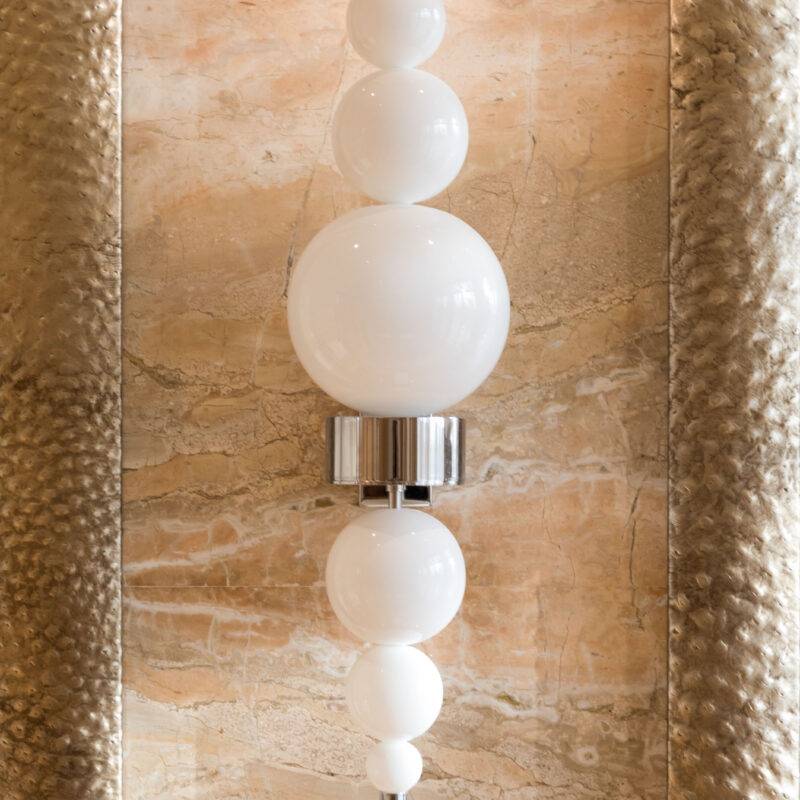 Высококачественные европейские материалы и ручной труд специалистов придают светильнику особую ценность. Выдувное стекло, из которого изготовлены стеклянные шары, позволяет создавать модели в различных цветовых оттенках: белом, чёрном, серебристом и золотом. Каждый цвет и их комбинация придают интерьеру индивидуальность и характер, отражая настроение и стиль владельца.