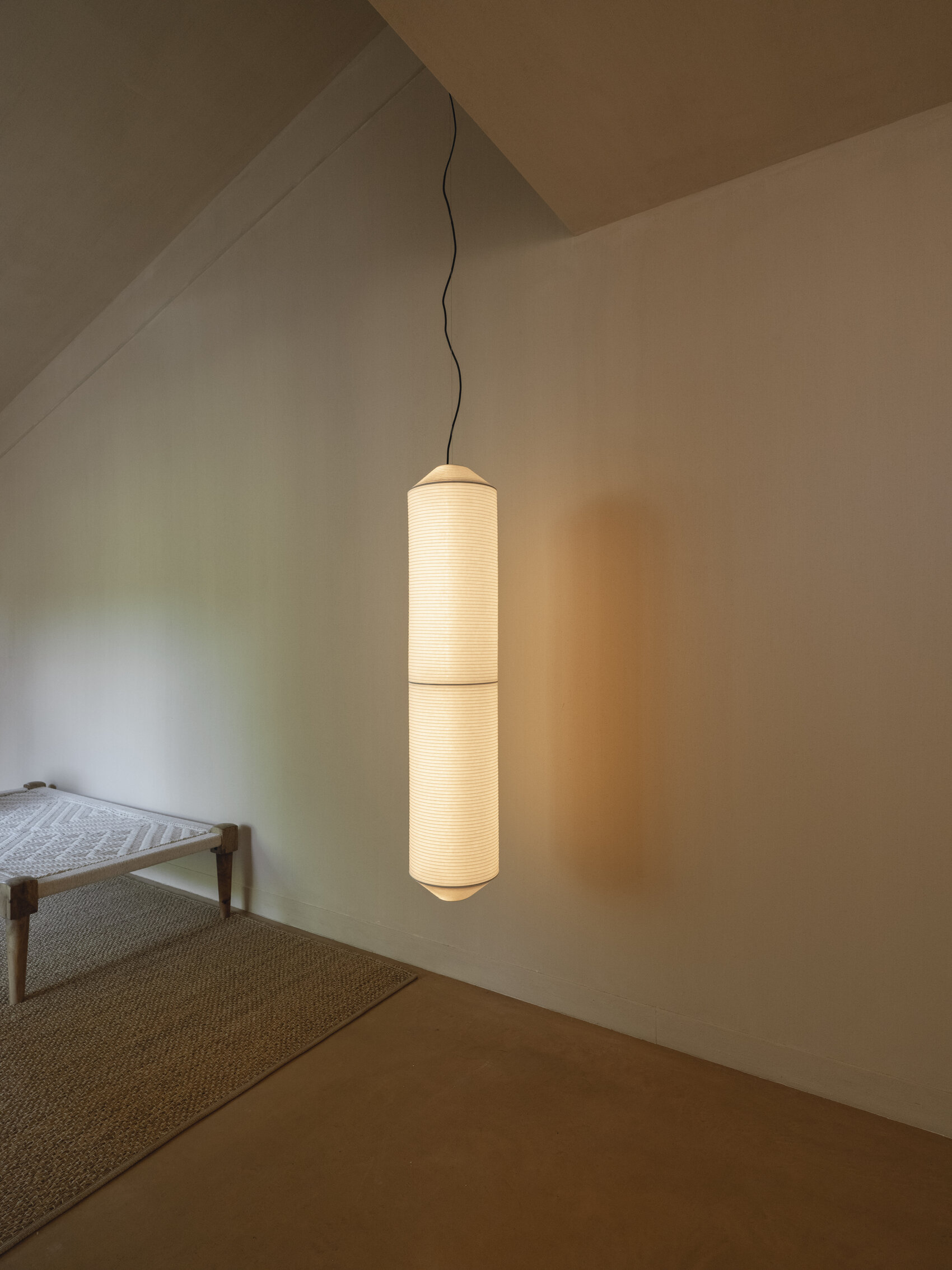 Абажур светильника выполнен из японской бумаги васи, что придаёт модели особый шарм и лёгкость. Металлическая конструкция обеспечивает прочность и долговечность светильника.
