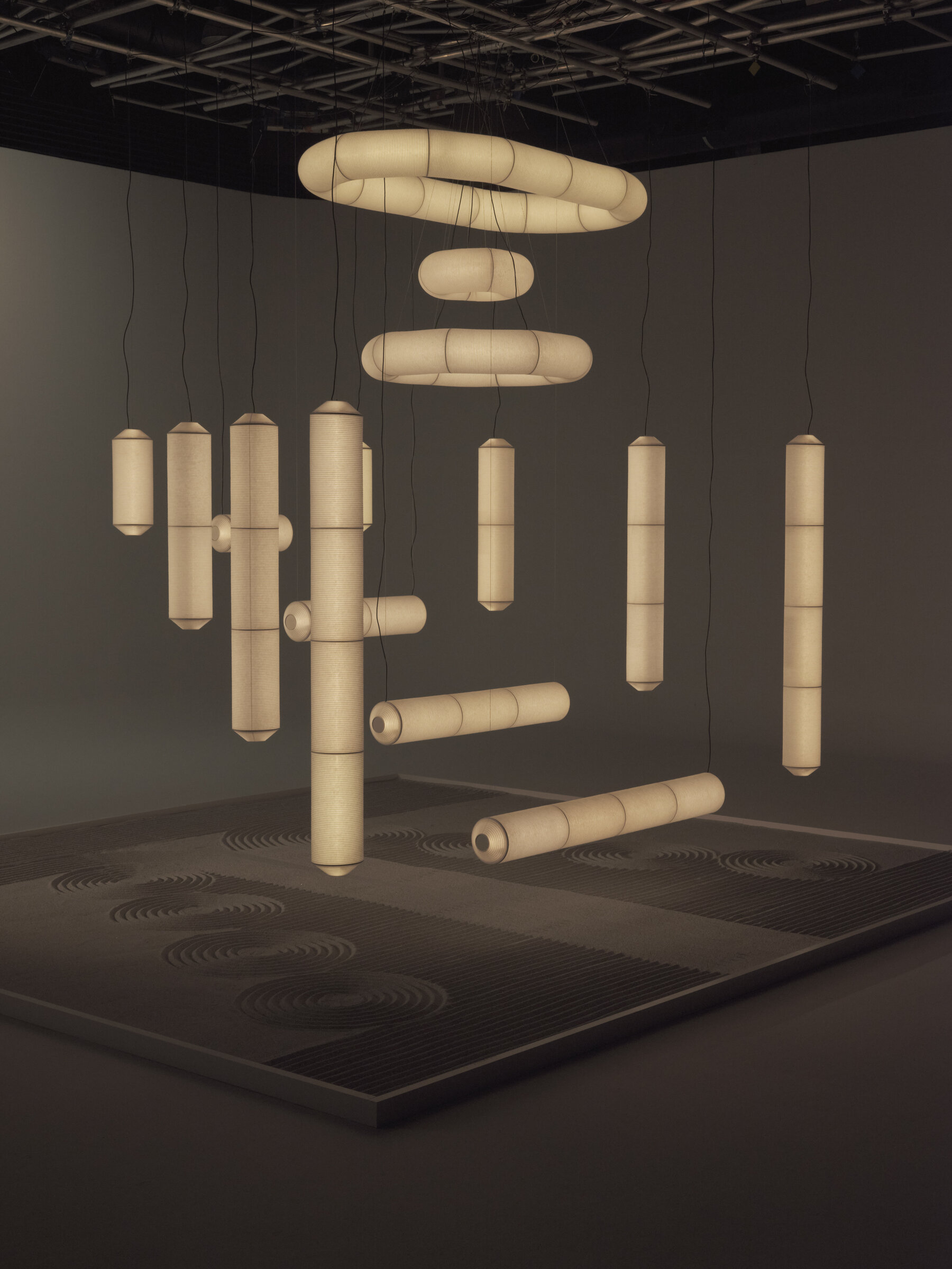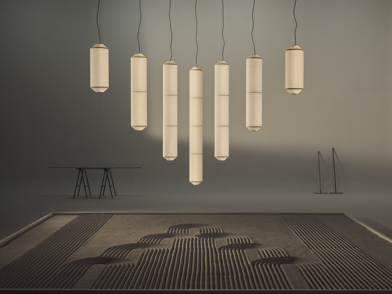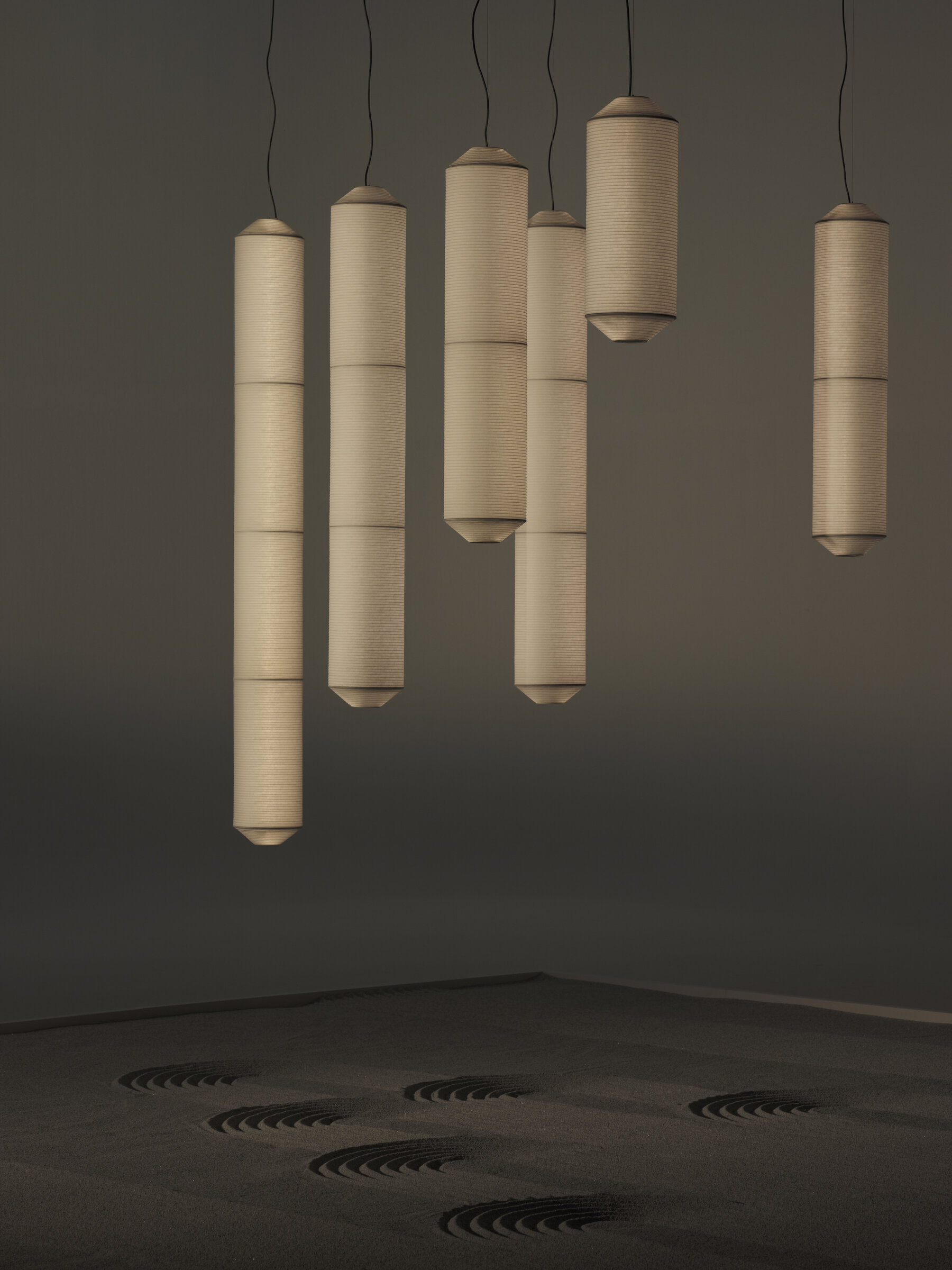 Tekiò Vertical предлагается в четырёх размерах по высоте, при этом диаметр светильника составляет 25 см. Максимальная длина подвеса достигает 500 см, что позволяет использовать светильник в помещениях с разной высотой потолков.