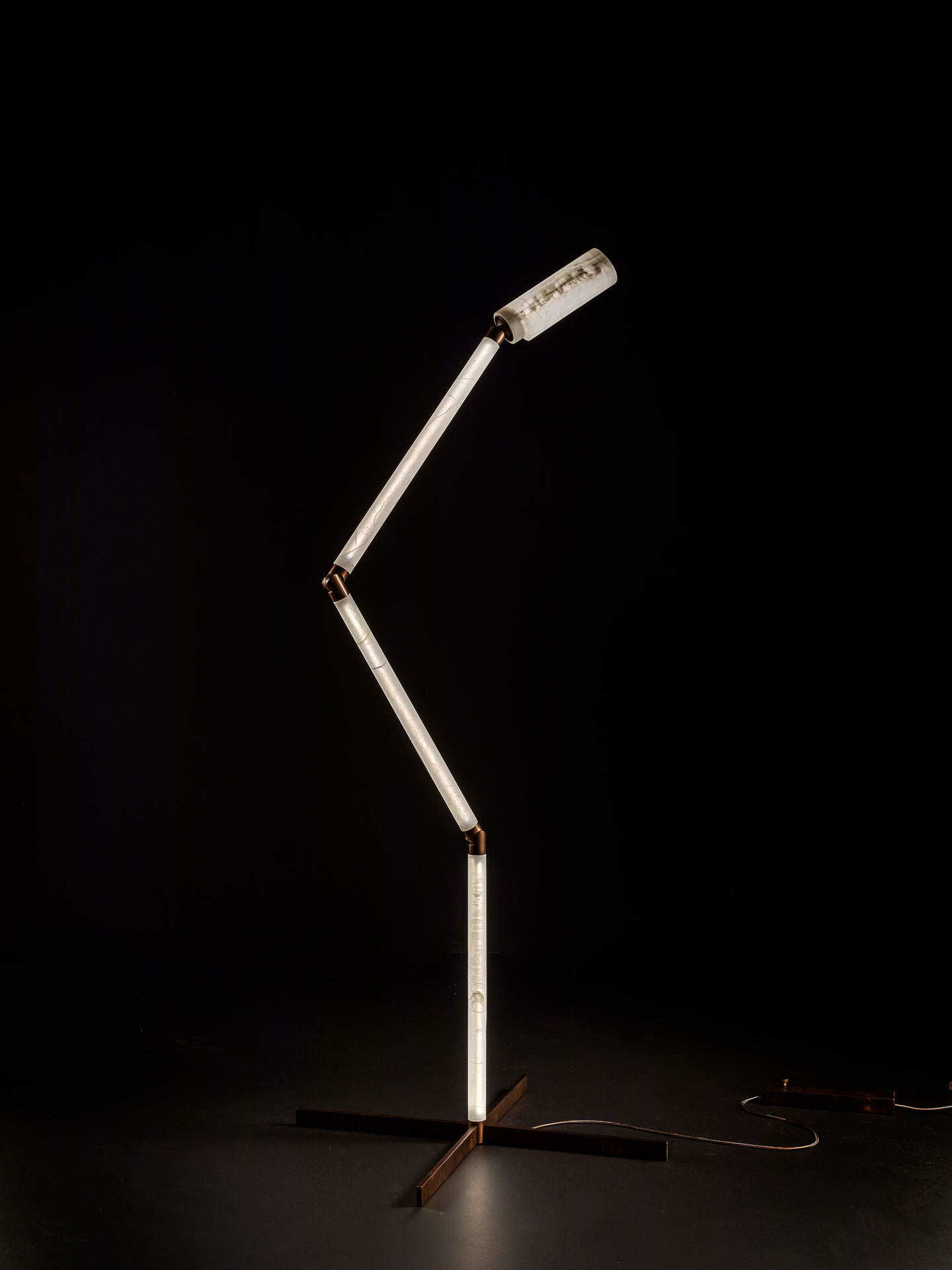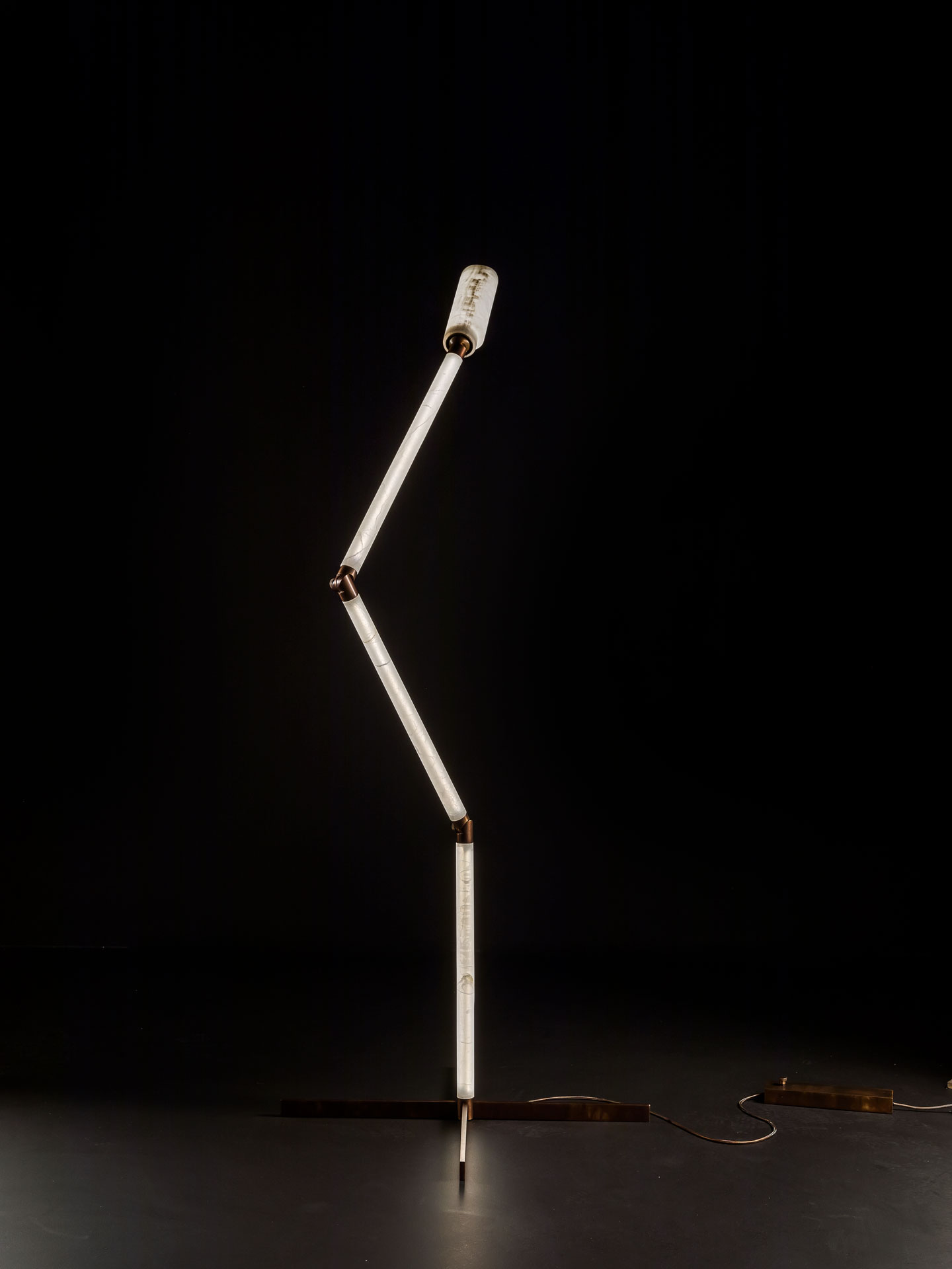 Основой торшера Test Tree служит стройный, сегментированный корпус из оникса, который, несмотря на свою геометрическую простоту, выглядит стильно и утончённо. Оникс, используемый в производстве, известен своей долговечностью и благородным внешним видом, что придаёт торшеру особую ценность.
