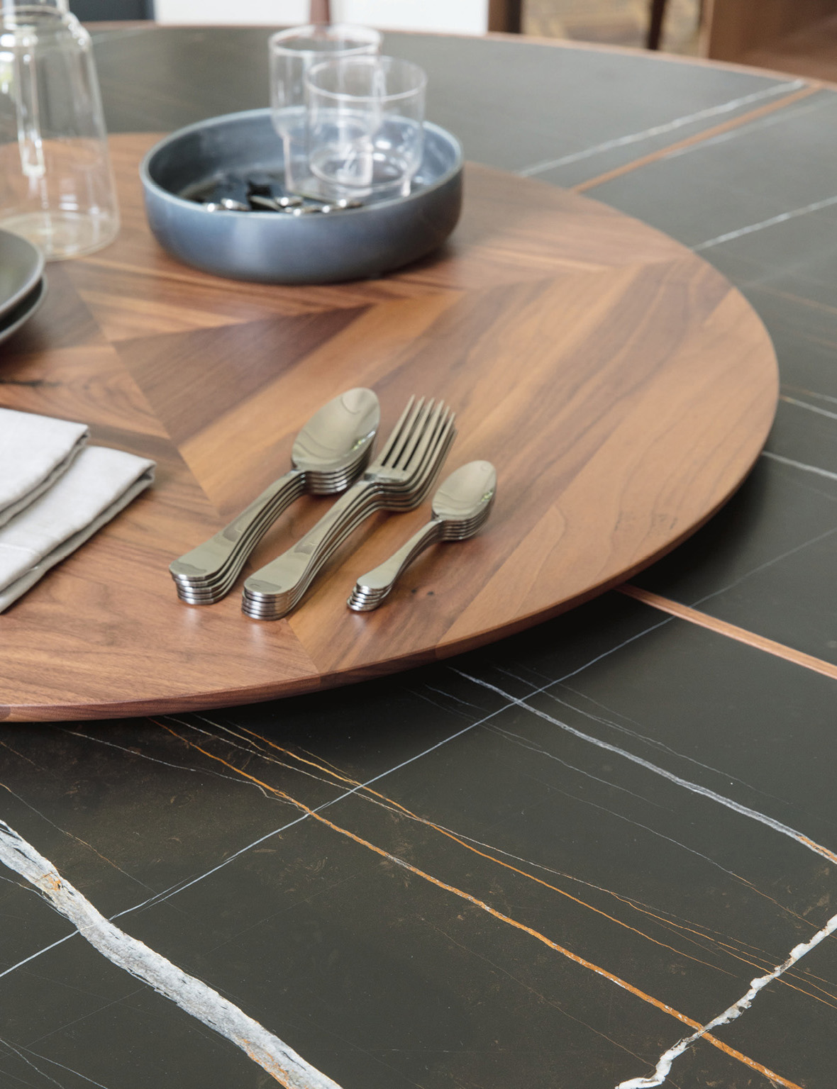 Обеденные столы Thayl воплощают в себе роскошь и утонченность, создавая атмосферу изысканности и комфорта. Их конструкция основана на сочетании массивного дерева и натурального мрамора, что не только придает изделиям элегантный внешний вид, но и обеспечивает их долговечность и устойчивость.