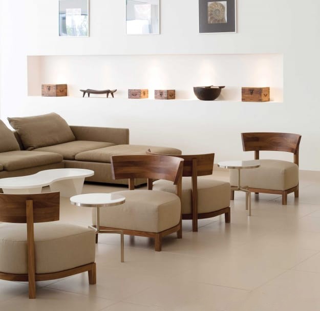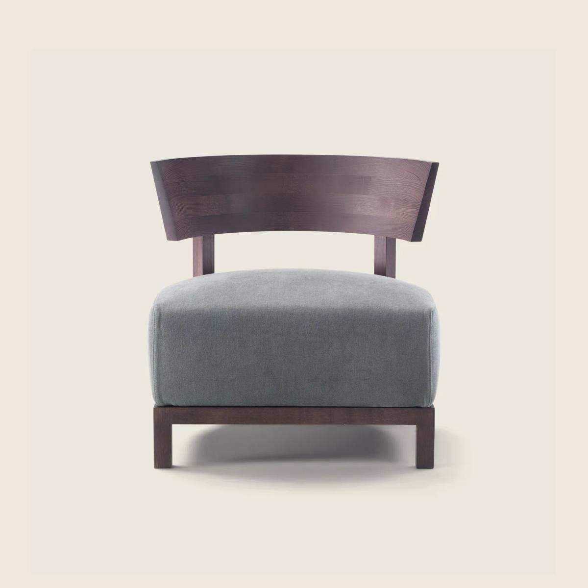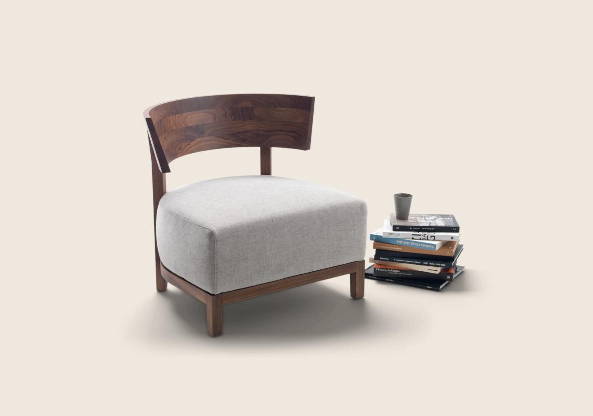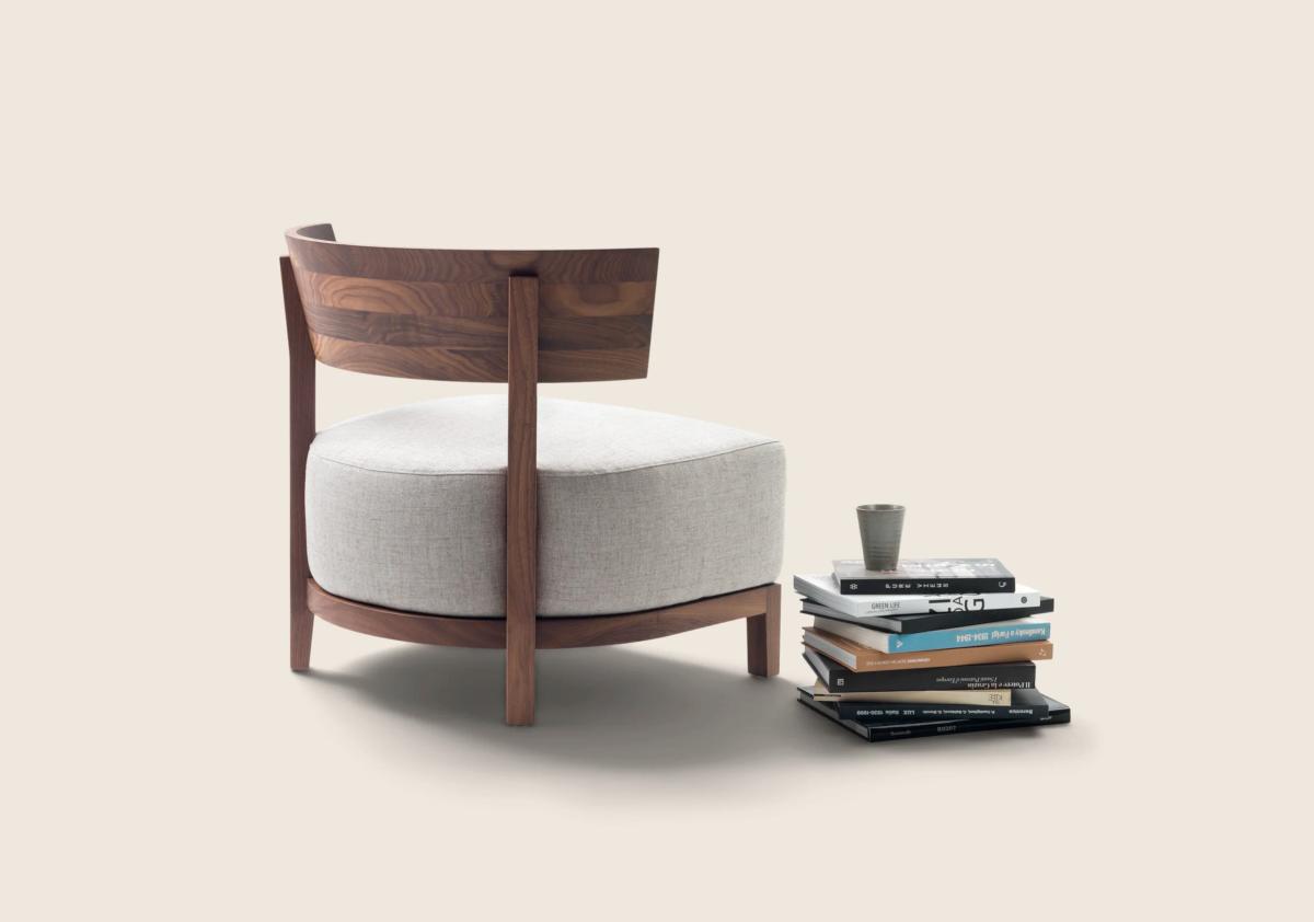 Каркас выполнен из массива ценных пород дерева и отличается строгими линиями, дополненными удобной полукруглой спинкой. Кресло доступно в разных вариантах отделки. Можно выбрать тонировку или глянцевый лак. Благодаря этому оно легко вписывается в любой интерьер. Его сдержанные пропорции и гармоничные формы делают Thomas универсальным предметом мебели, который можно комбинировать с диванами Flexform или использовать самостоятельно.