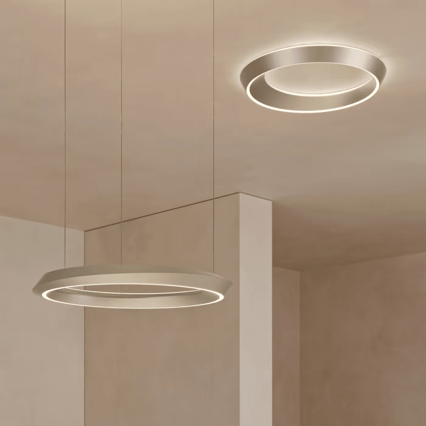 Tidal — это изысканное семейство светильников, отличающихся высокой светоотдачей и элегантным дизайном. Их текучая и впечатляющая форма, вдохновленная движениями небесных тел, волн и приливов, придает светильникам уникальный вид в зависимости от угла зрения. Асимметричная структура кольца, где одна сторона шире другой, делает каждый светильник неповторимым.