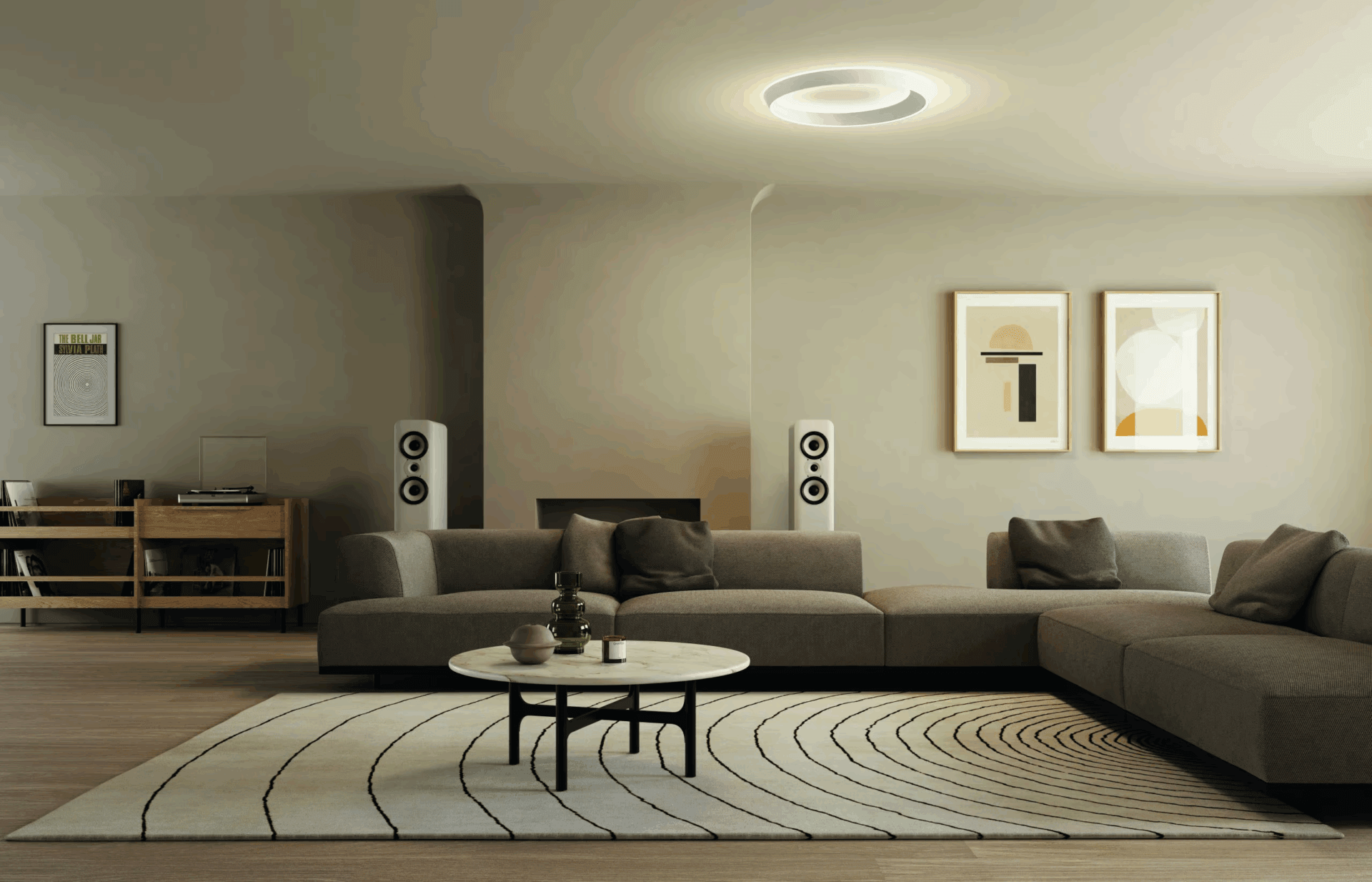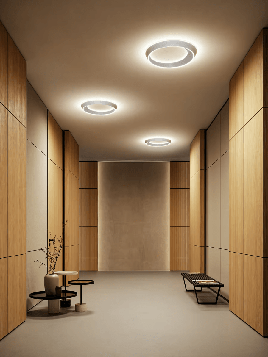 Светильники Tidal ceiling обладают уникальной способностью направлять свет одновременно вниз и вверх. Это создаёт многослойное освещение. Оно подчёркивает пространство и добавляет глубину интерьеру. Все технические элементы, такие как драйверы и системы охлаждения, спрятаны внутри компактного корпуса. Корпус имеет небольшую толщину. Это делает светильники не только функциональными, но и визуально привлекательными.