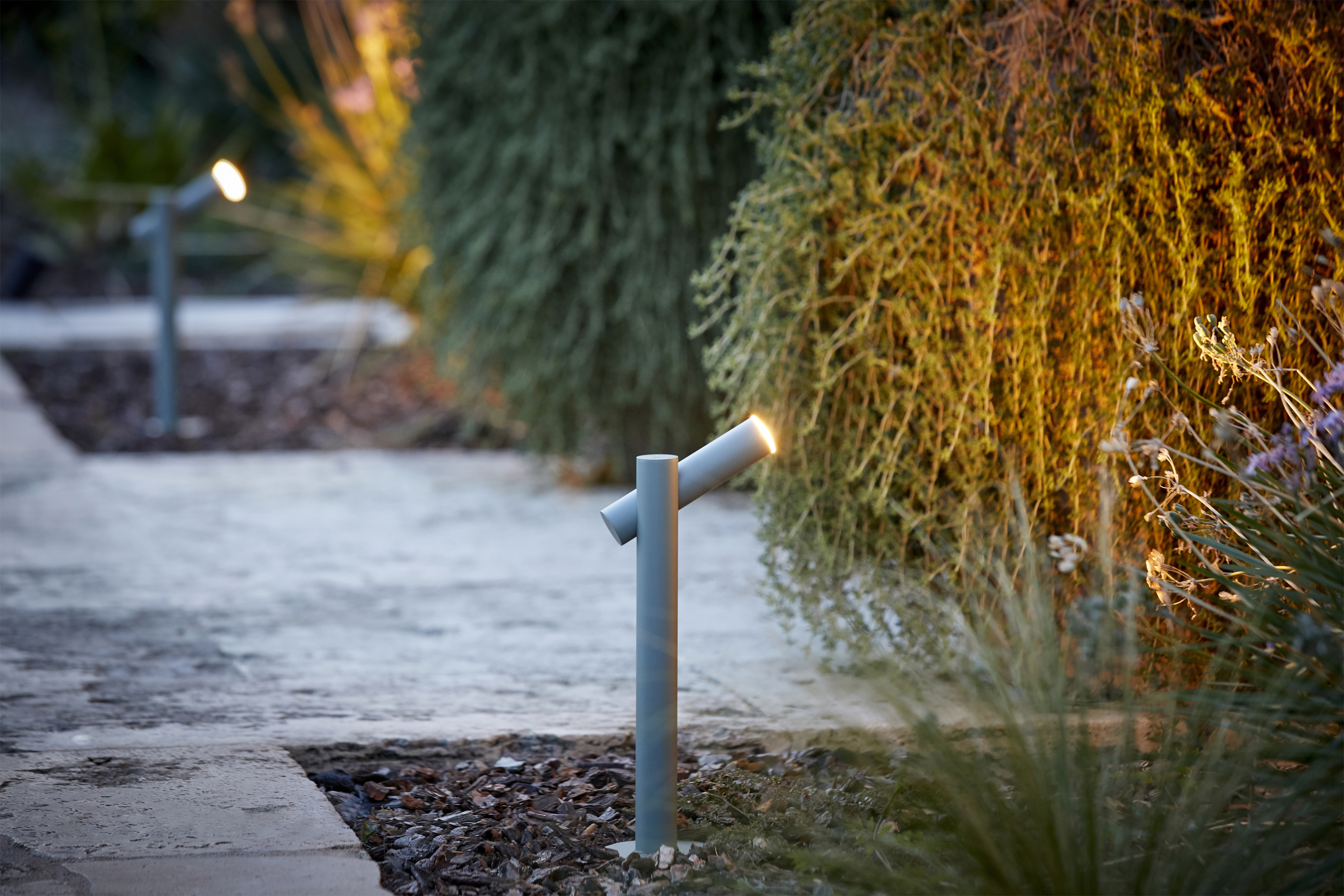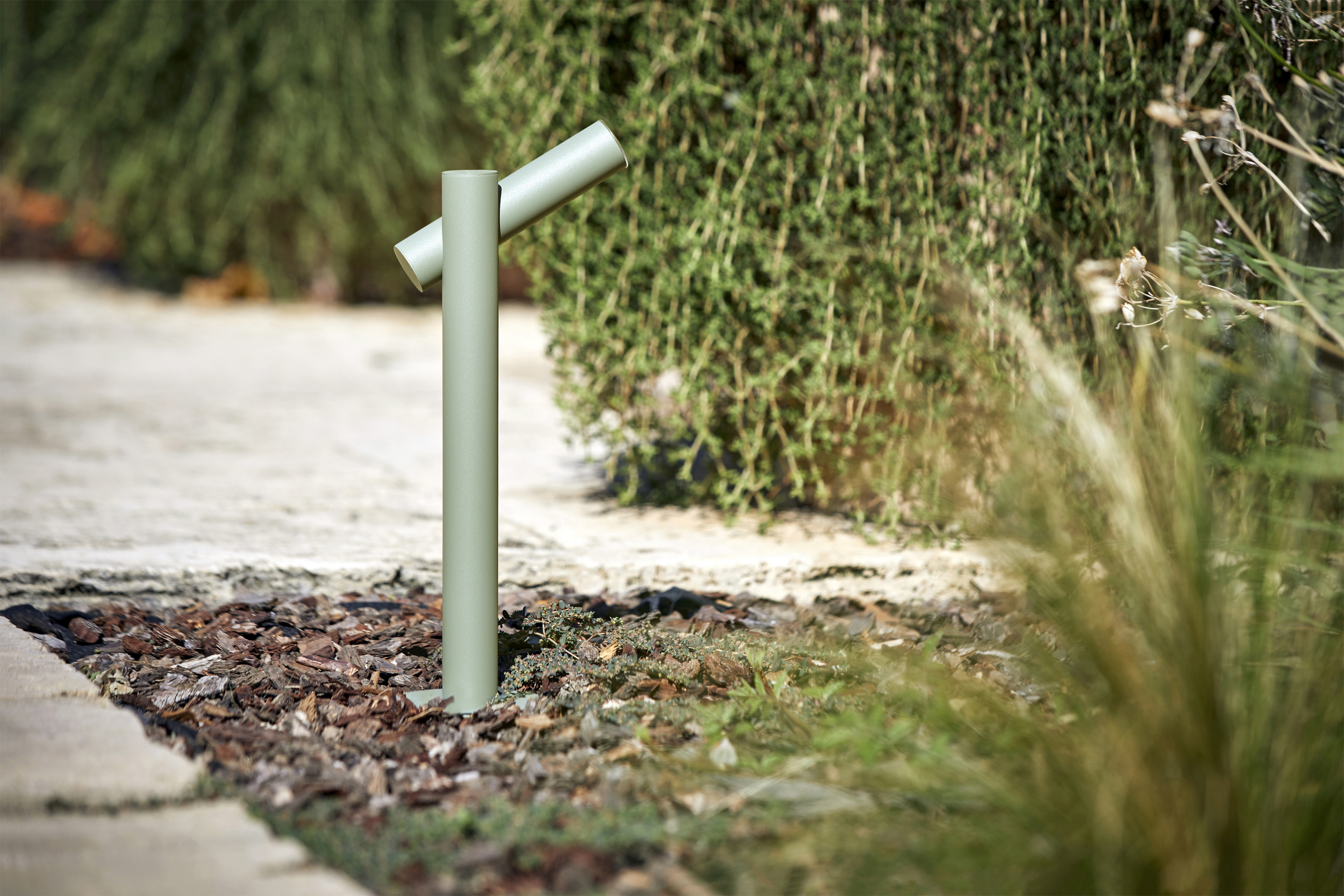 Tik Outdoor — уличный столбовой светильник из металла, созданный для надёжного и эстетичного освещения открытых пространств. Его конструкция продумана до мелочей: цилиндрическая трубка надёжно скрывает встроенный светодиод, защищая его от внешних воздействий. При этом положение источника света фиксировано — регулировка не предусмотрена, что гарантирует стабильность светового потока в любых условиях эксплуатации.