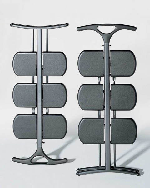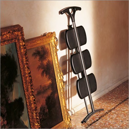 Стремянка Tiramisu представляет собой сочетание дизайнерской мысли, необычайной функциональности и удобства. Изогнутые балки упираются в землю и не дают стремянке хоть немного уйти в складное положение. Материал, использованный для ступеней защищает от соскальзывания. Так же эту стремянку удобно хранить, она очень легко сворачивается, не занимает много места. В сложенном состоянии параметры высота: 101 см, длина: 7 см, ширина: 43 см.