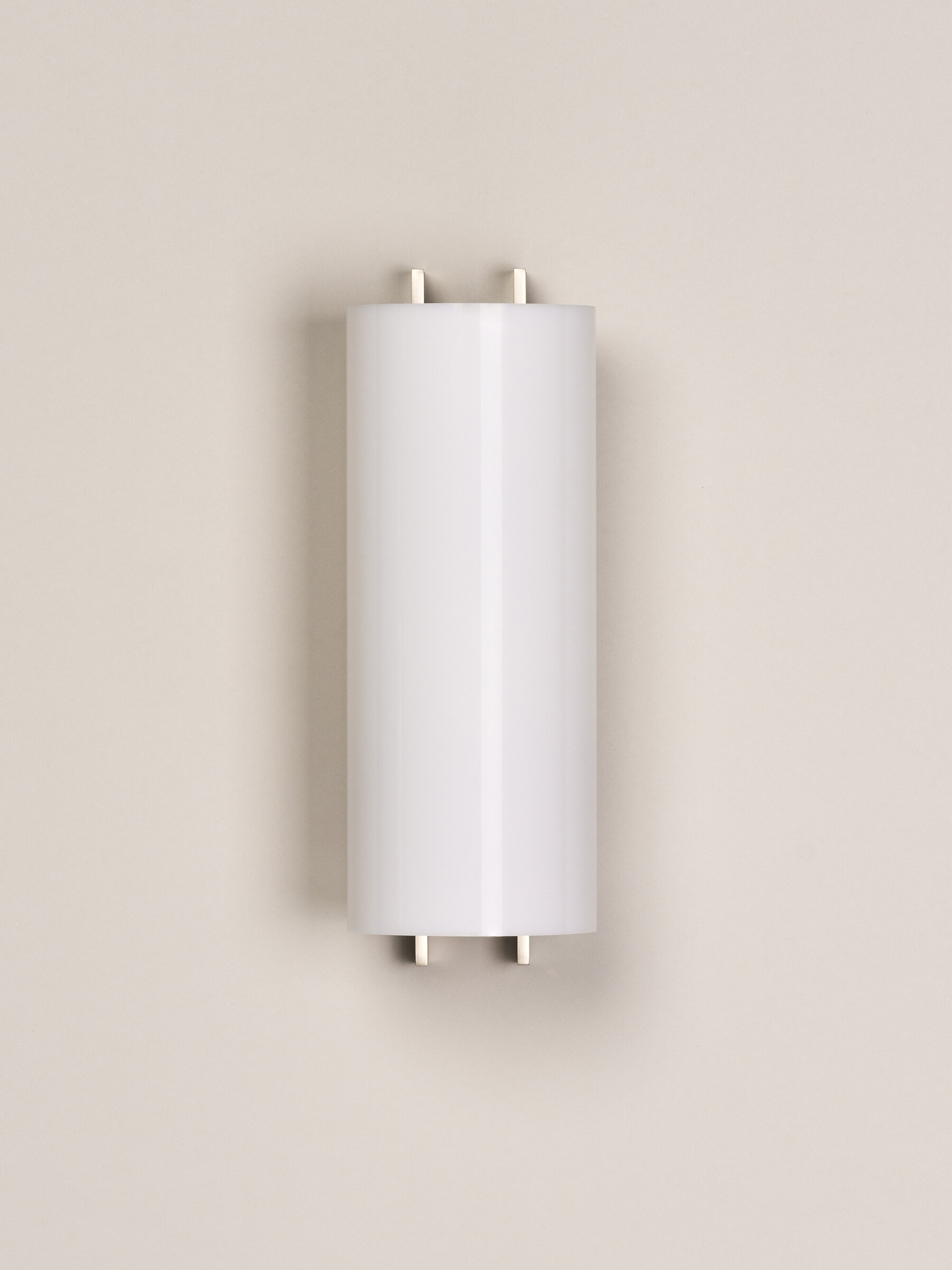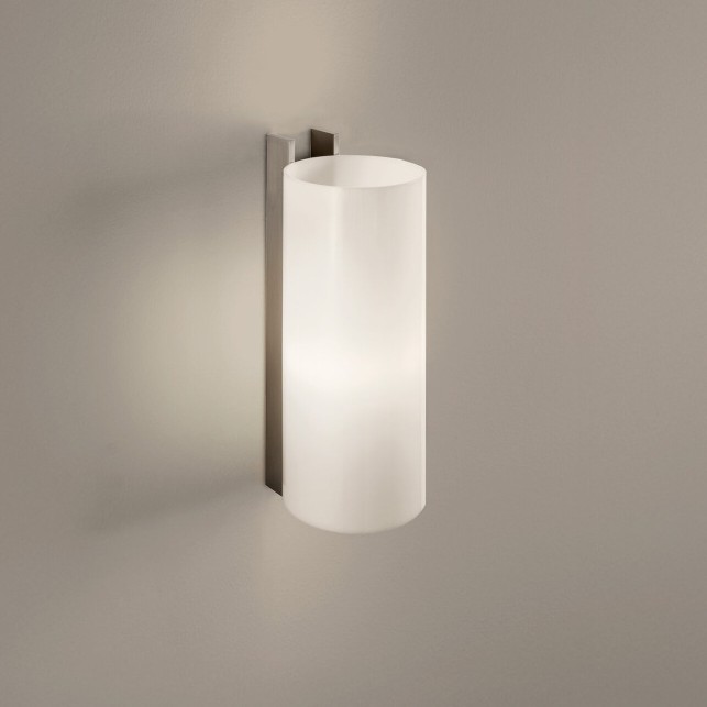 Модель TMM wall Metálico выглядит более современно. Её металлический каркас с сатинированным никелевым покрытием имеет сдержанный матовый блеск, который не создаёт резких бликов. Белый метакрилатный абажур частично скрыт каркасом, что придаёт светильнику лаконичный, продуманный облик. В отличие от деревянной версии, эта модель заметно лучше противостоит влаге — металл и метакрилат гораздо устойчивее к воздействию сырости, чем дерево и пергамент.