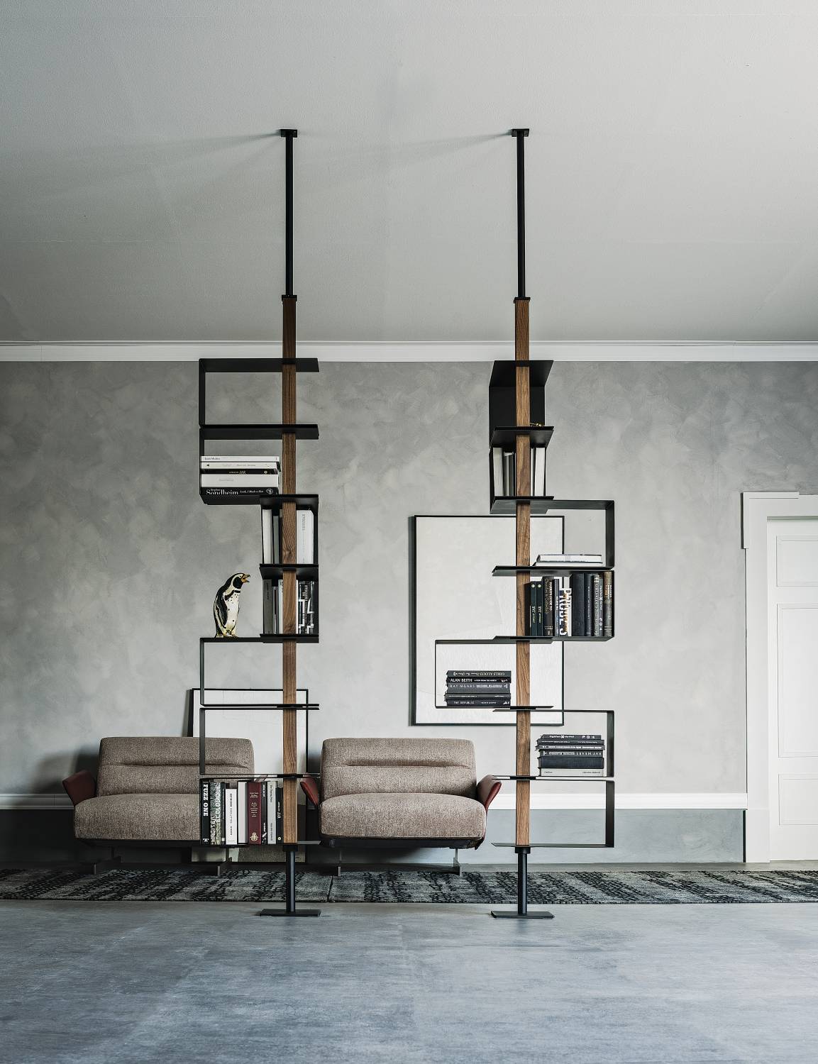 Стеллаж Okyo, представляет собой смелый эксперимент на стыке мебельного дизайна и сценографии. Его ключевой особенностью является подвесная конструкция с креплением к потолку, что превращает его в динамичный арт-объект, способный трансформировать восприятие всего пространства. Okyo — это выбор для тех, кто рассматривает организацию пространства как форму искусства. Это не просто стеллаж, а инструмент для создания нарратива, где мебель и её содержимое вместе формируют уникальную и динамичную визуальную историю.