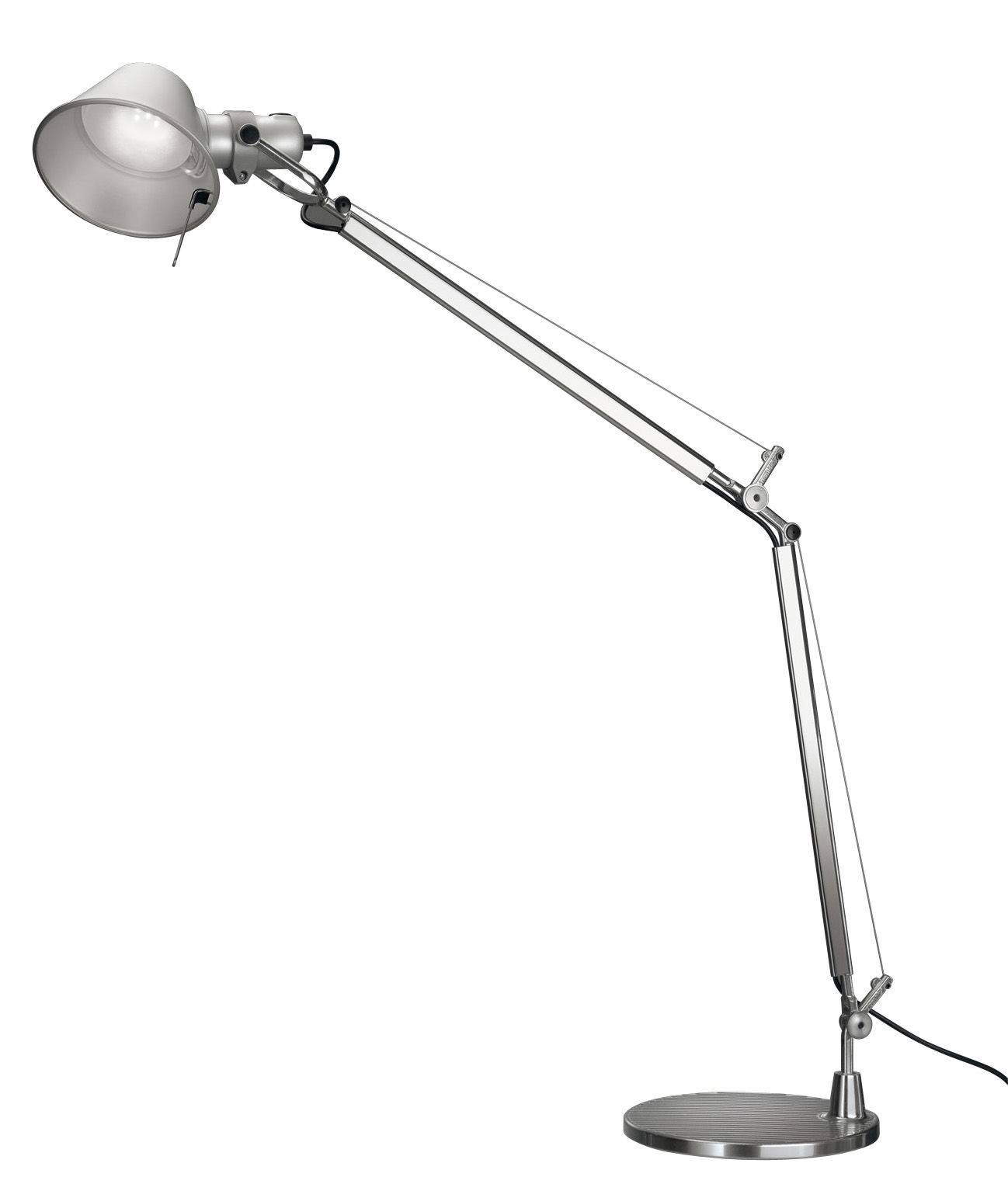 Линия TOLOMEO хорошо известна любителям дизайна по всему миру, запоминающиеся формы не оставят равнодушным никого. Сплав алюминия, используемый для изготовления светильника, обеспечивает прочность конструкции и небольшой вес. Настольные светильники могут комплектоваться разной базой — обычным основанием, струбциной для крепления на стол или специальным креплением для отверстия в столе .TOLOMEO — является авторской разработкой дизайнеров Michele De Lucchi и Giancarlo Fassina. Также возможен вариант с датчиком присутствия. Источник света 10W LED 3000K, 410lm.