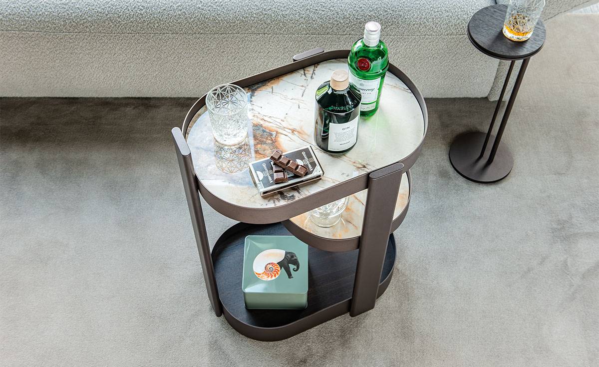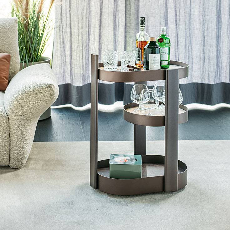 Барный столик TONIC — это скульптурный объект, превращающий сервировку напитков в искусство. Его асимметричная конструкция из трёх ярусов не просто функциональна, но и становится центром притяжения в интерьере, демонстрируя безупречный вкус владельца.