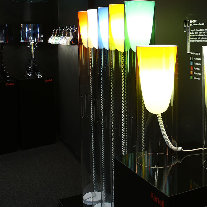 Светильники Toobe представлены как в настольном, так и в напольном вариантах. В них сочетает простота линий и уникальная дизайнерская задумка. С помощью современных технологий внутри трубки из полиметилметакрилата поместили рассеивающий элемент и растянули изнутри красящее вещество, что создает эффект парящего в воздухе объекта. В итоге получился магический предмет, будто прилетевший к нам с другой планеты. Лампа: E27 IAA, E26 SB CFL.